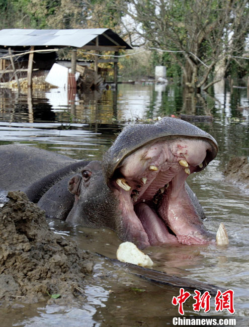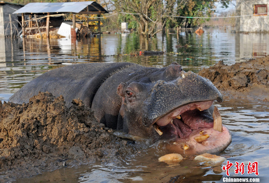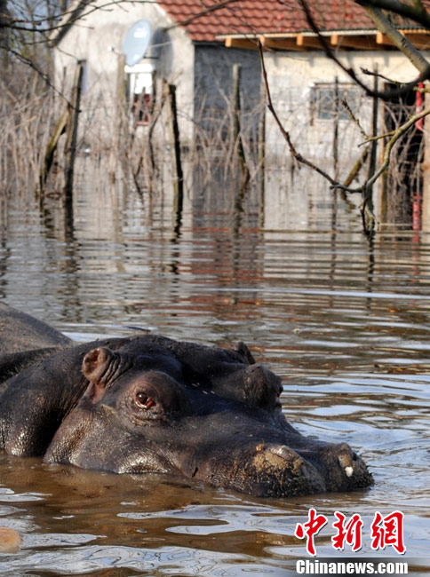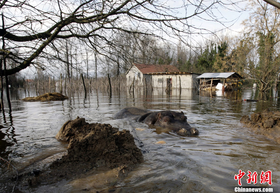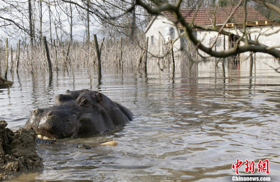 巴尔干半岛大雨成灾 动物园河马出逃