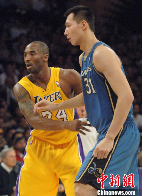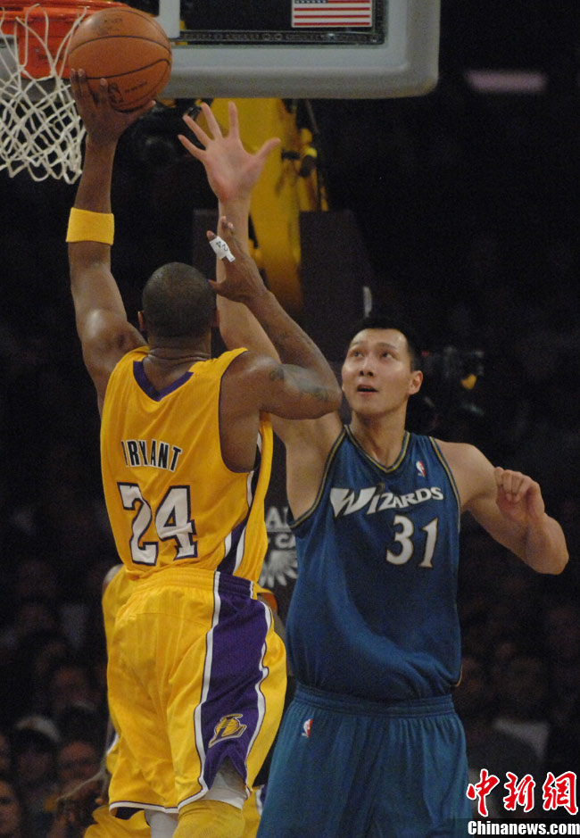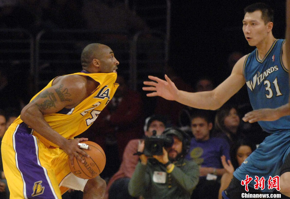 当地时间12月7日晚,华盛顿奇才队在洛杉矶客场挑战洛杉矶湖人队,由于奇才主力前锋安德雷赛前左臀撞伤,中国球员易建联先发上阵,这是易建联本赛季首次先发。上半场奇才以56比69落后,易建联拿下5分。中新社发 张炜 摄
