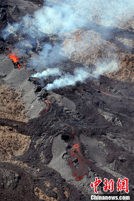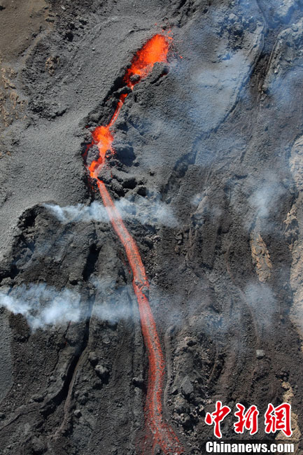 12月10日,法国留尼旺岛上的弗尔乃斯火山喷发熔岩流,位于印度洋西南部的弗尔乃斯火山是世界上最活跃的活火山之一。