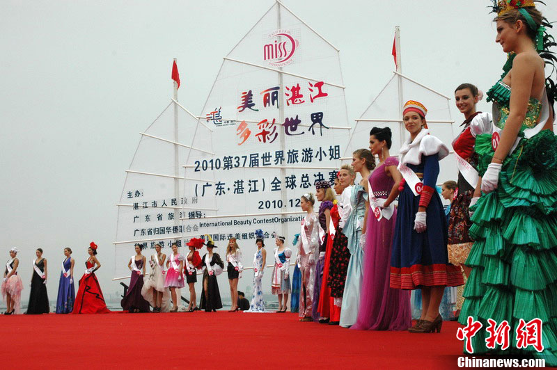 12日上午,第37届世界旅游小姐全球总决赛开幕式在广东湛江举行。活动期间,来自各个国家和地区的53名旅游佳丽,将进行巡游、展演及泳装、民族服装、晚装表演、才艺问答等环节比赛,最后评出世界旅游小姐全球总决赛冠、亚、季军。中新社记者 梁盛 摄