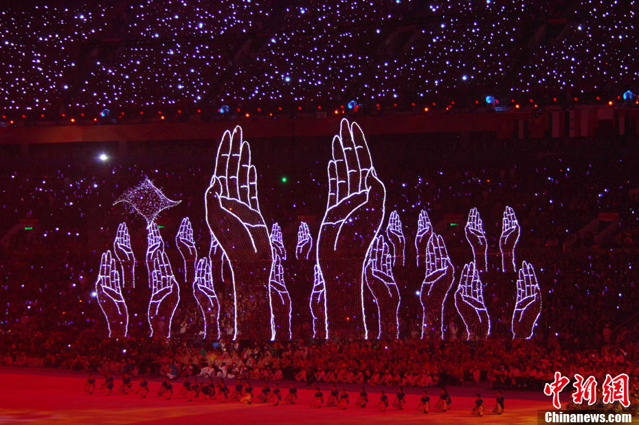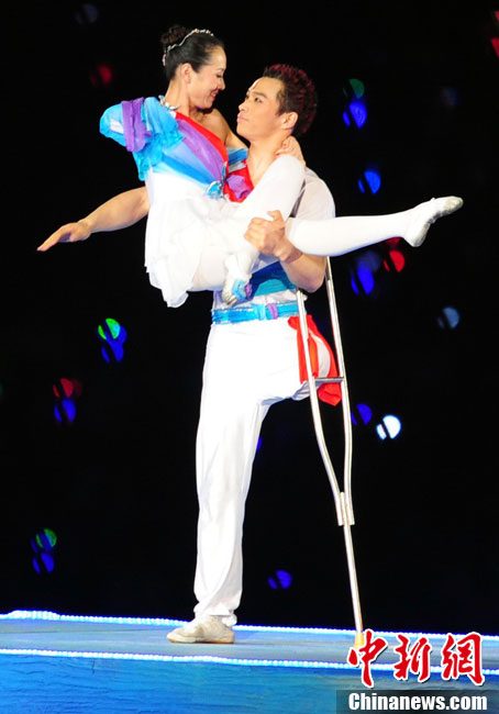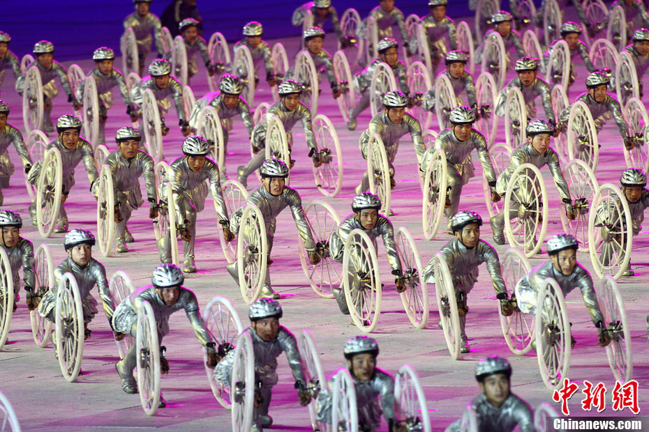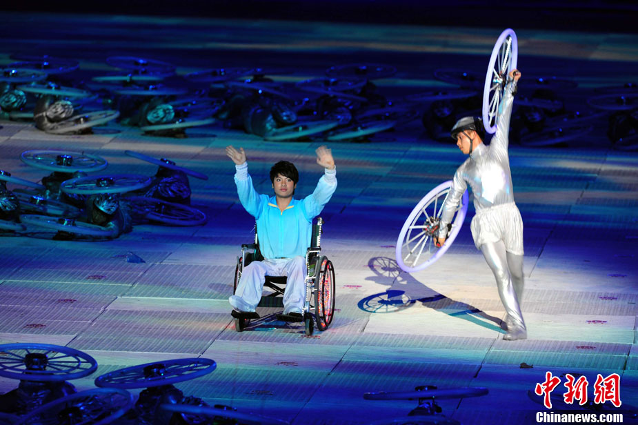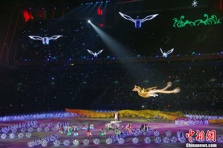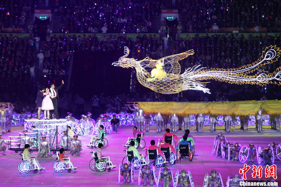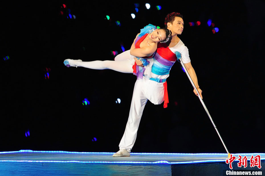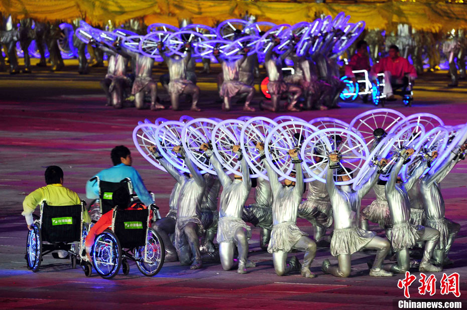 12日晚,广州亚残运会开幕式在广东奥林匹克体育中心举行,开幕式展现了亚残运会温馨、朴实、动人的情怀。中新社记者 梁永强 摄