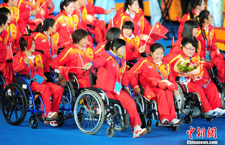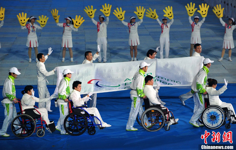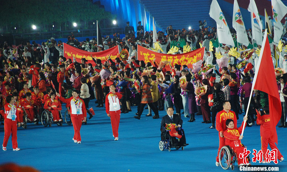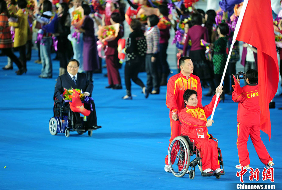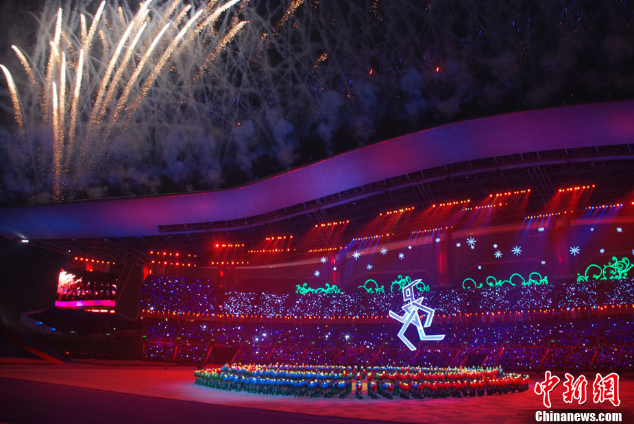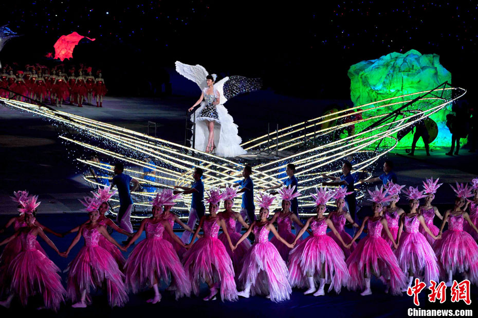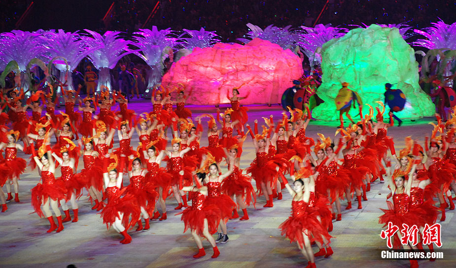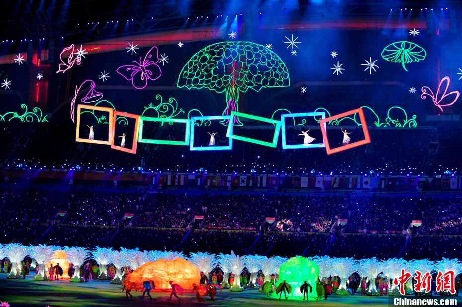 12日晚,广州亚残运会开幕式在广东奥林匹克体育中心举行,开幕式展现了亚残运会温馨、朴实、动人的情怀。中新社记者 梁永强 摄
