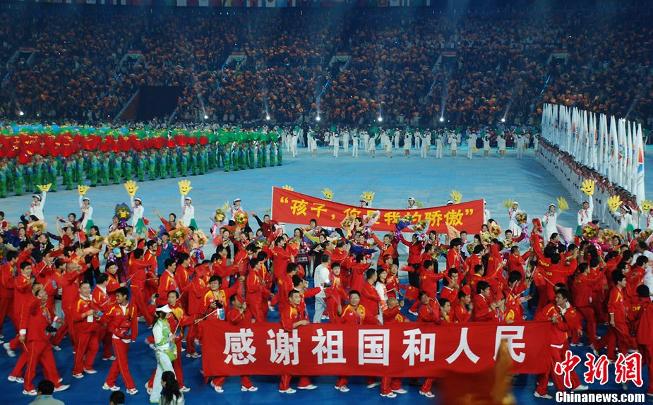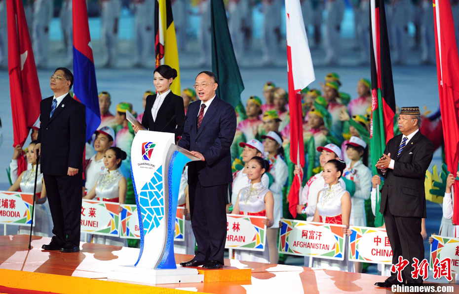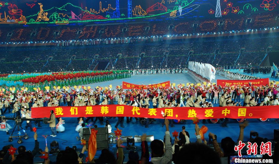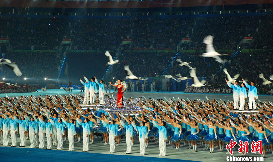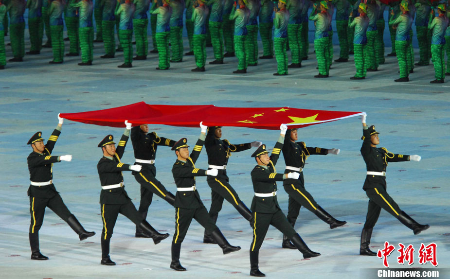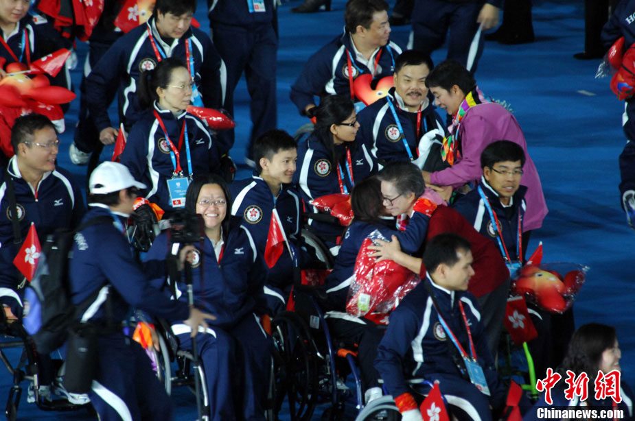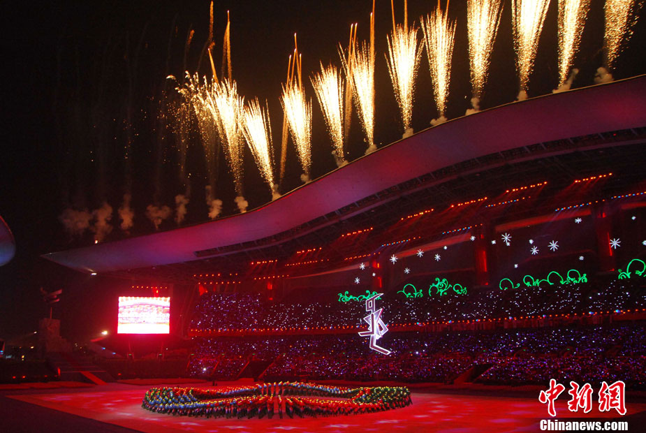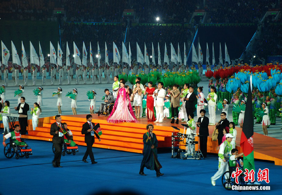 12日晚,广州亚残运会开幕式在广东奥林匹克体育中心举行,开幕式展现了亚残运会温馨、朴实、动人的情怀。中新社记者 梁永强 摄