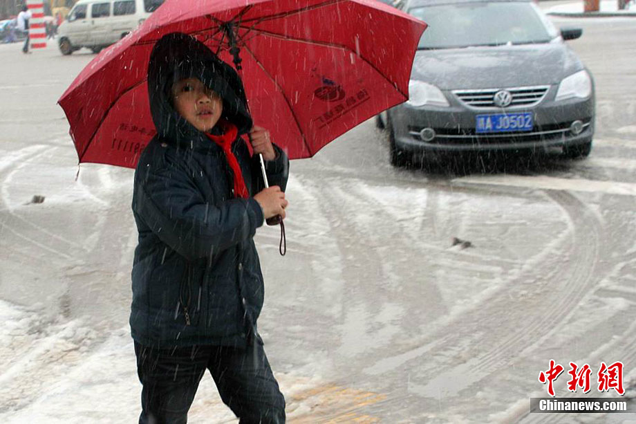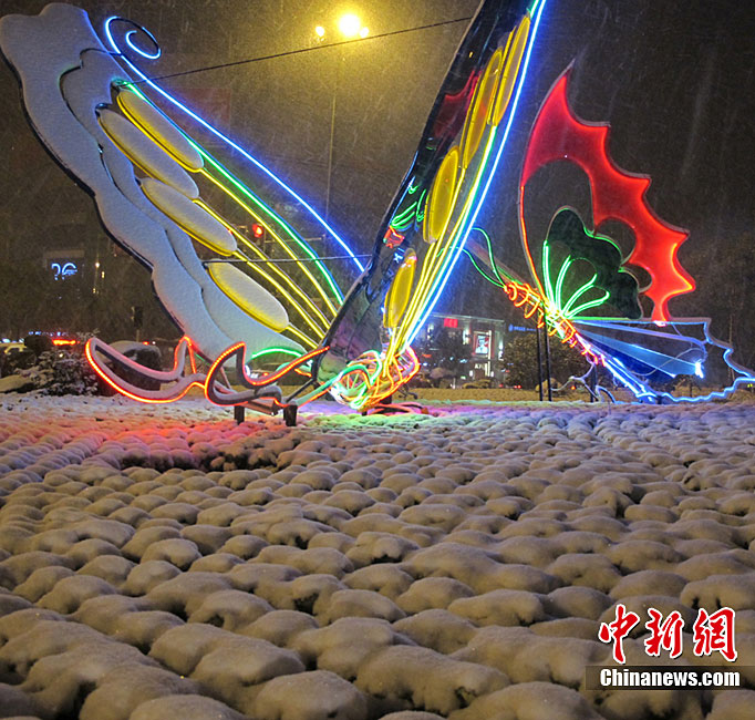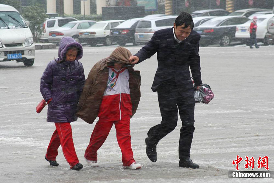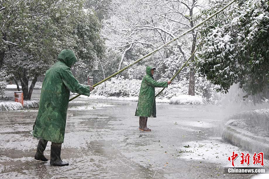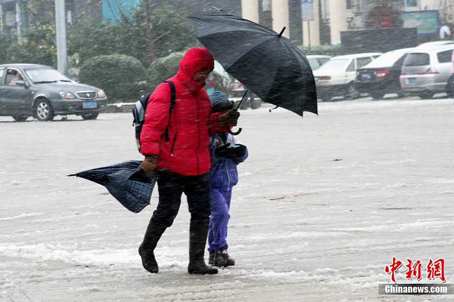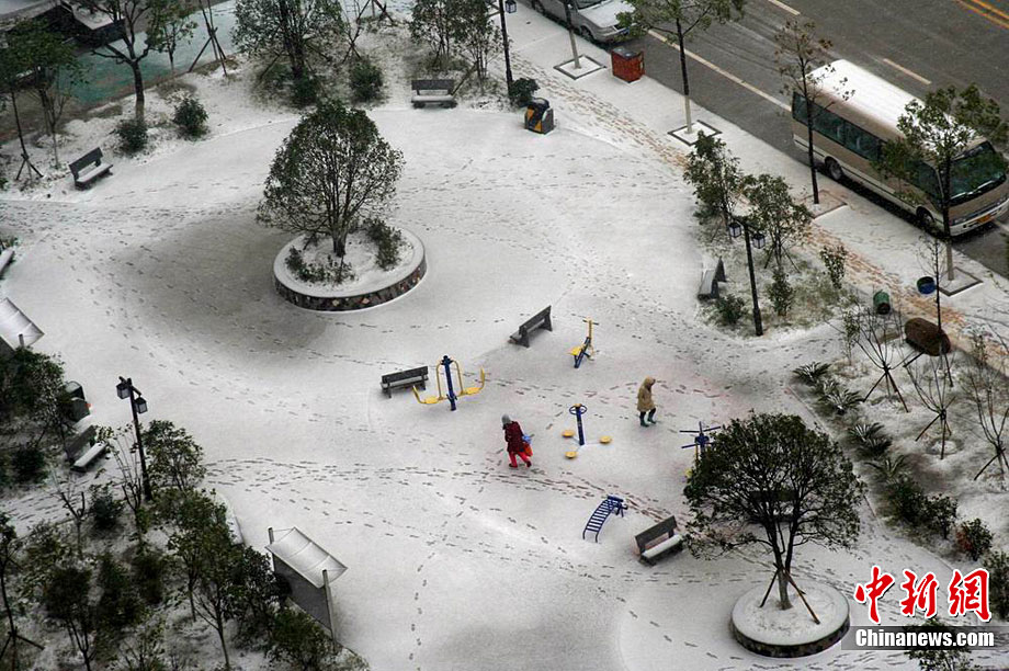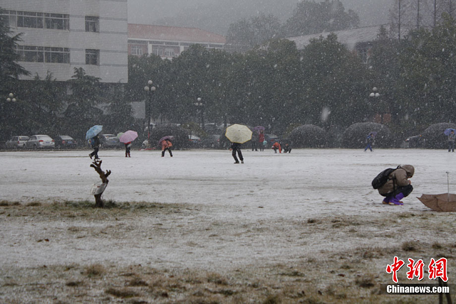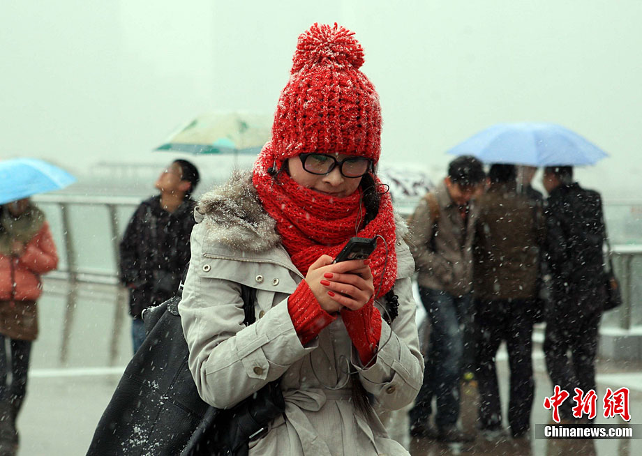 12月15日,杭州西湖上空飘起鹅毛般的雪花。据杭州市气象台发布的降温报告,杭州最低气温已经下降到2.5度,并伴有5至6级偏北风和明显降雪天气过程。中新社发 郦叶 摄