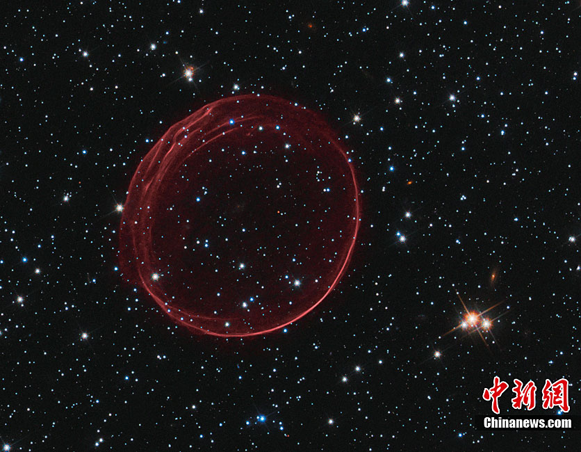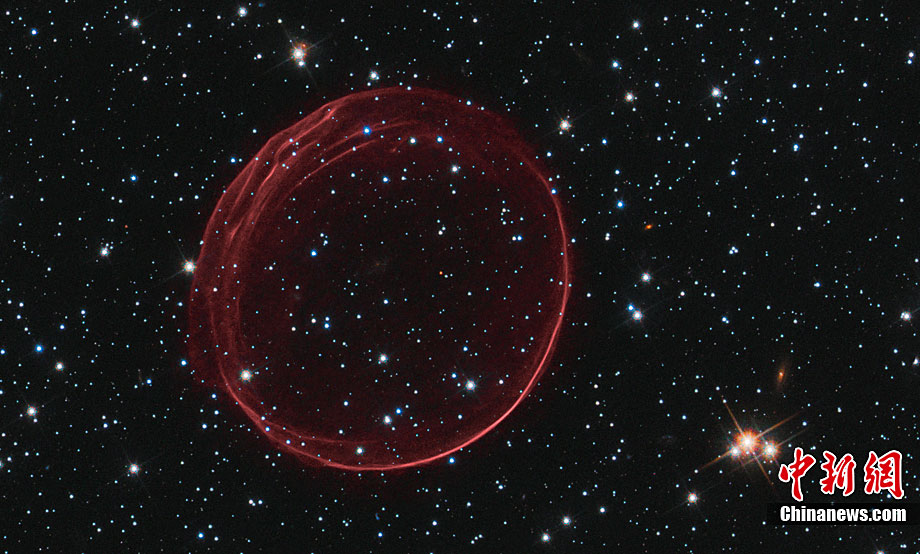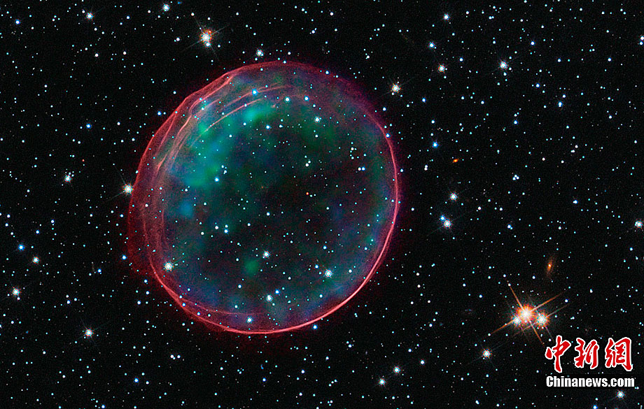 近日,美国哈勃太空望远镜拍摄到了美丽的星系间“圣诞大气泡”的照片。这个“圣诞大气泡”是由400年前发生的超新星爆炸的残骸形成的,它像一个精致的“壳”一样漂浮在太空中。据悉,这个“圣诞大气泡”是我们的临近星系——大麦哲伦星云(Large Magellanic Cloud)中的一颗超新星在爆炸时发出的冲击波及其喷射出来的物质 ,大麦哲伦星云与地球的距离为16万光年。科学家们将这个“圣诞大气泡”气圈命名为“SNR B0509-67.5”或者缩写成“SNR 0509”。据悉,这个如气泡状的气圈的直径为23光年,并且正在以超过1100万千米每小时的速度扩散。另外,哈勃太空望远镜拍摄到了“圣诞大气泡”处于各种不同情况下的照片。