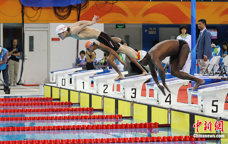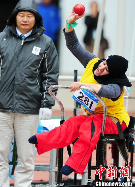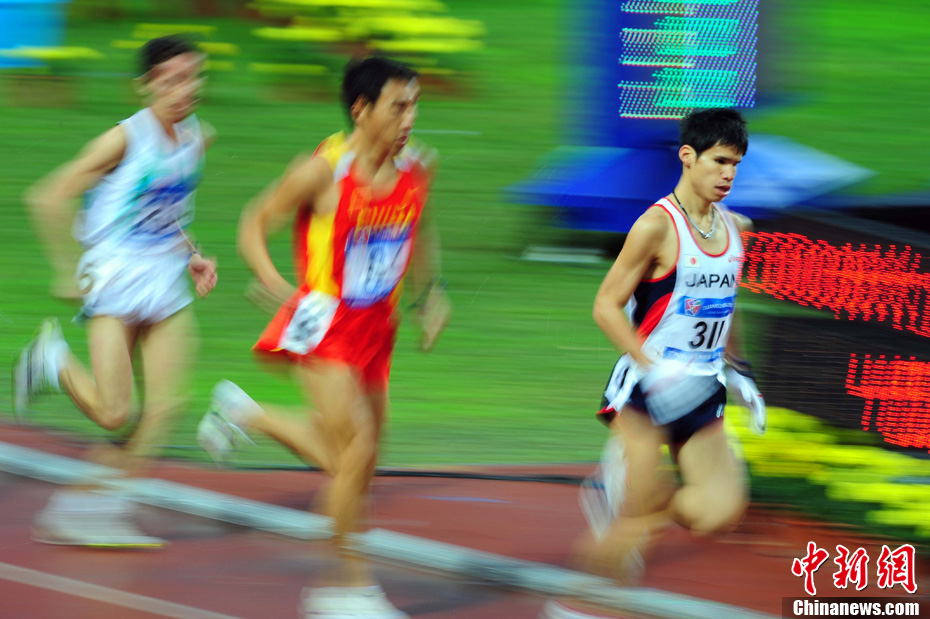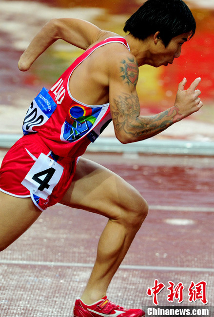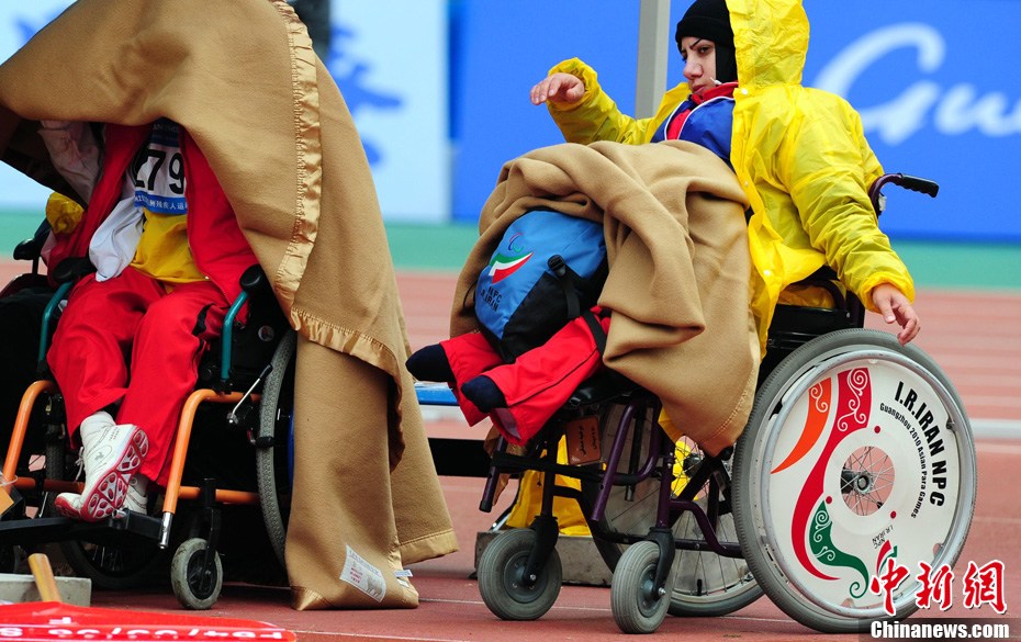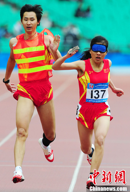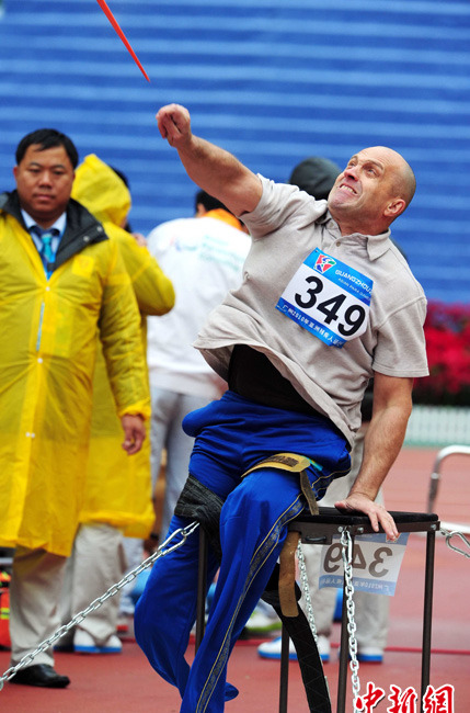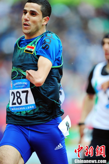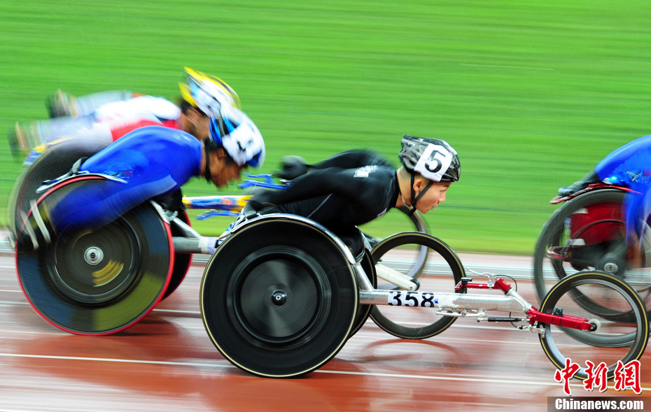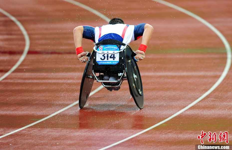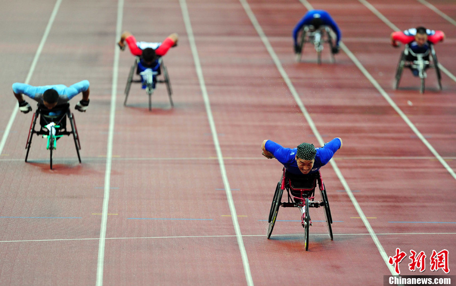 12月15日,广州亚残运会田径比赛进入第2天,赛场上的男子T12级、T53级、T54级“雄鹰”在奥体中心飞翔。中新社记者 陈文 摄