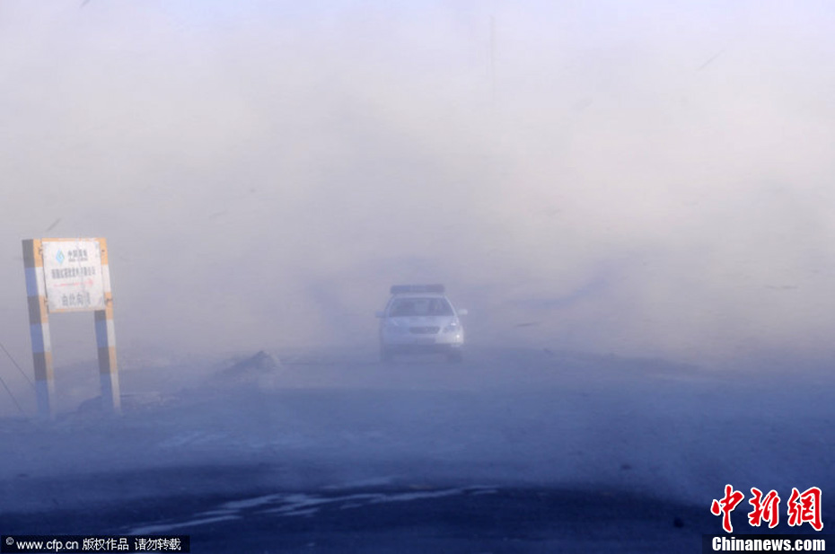 12月15日,乌鲁木齐市,昏黄的沙尘滚滚而来,天空瞬间变成了黄色。图片来源:秦鹏 摄 CFP/视觉中国