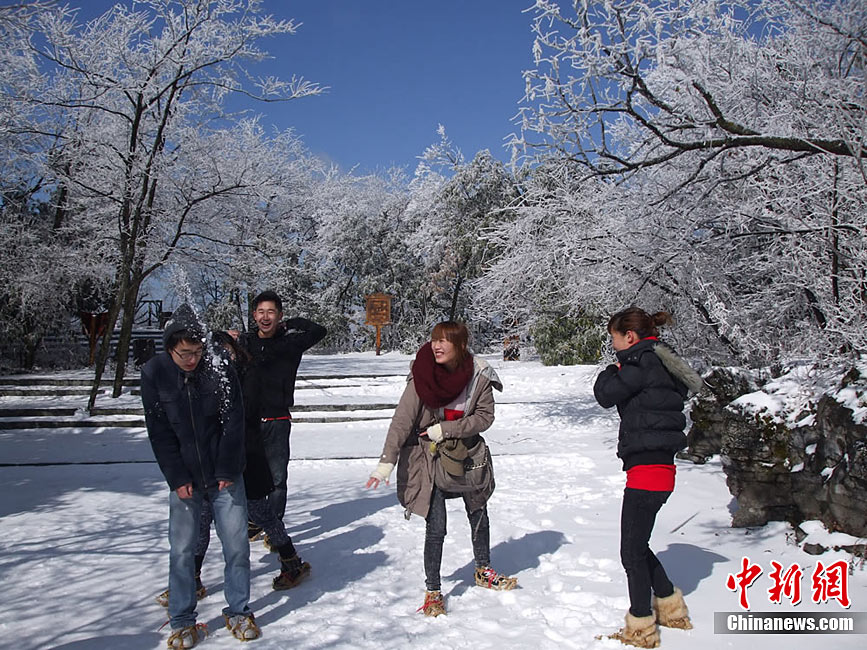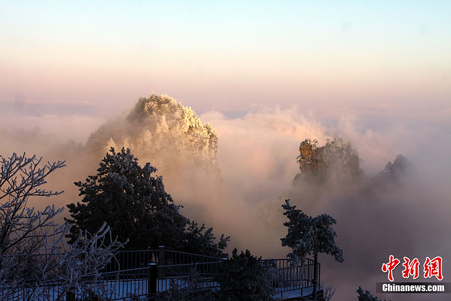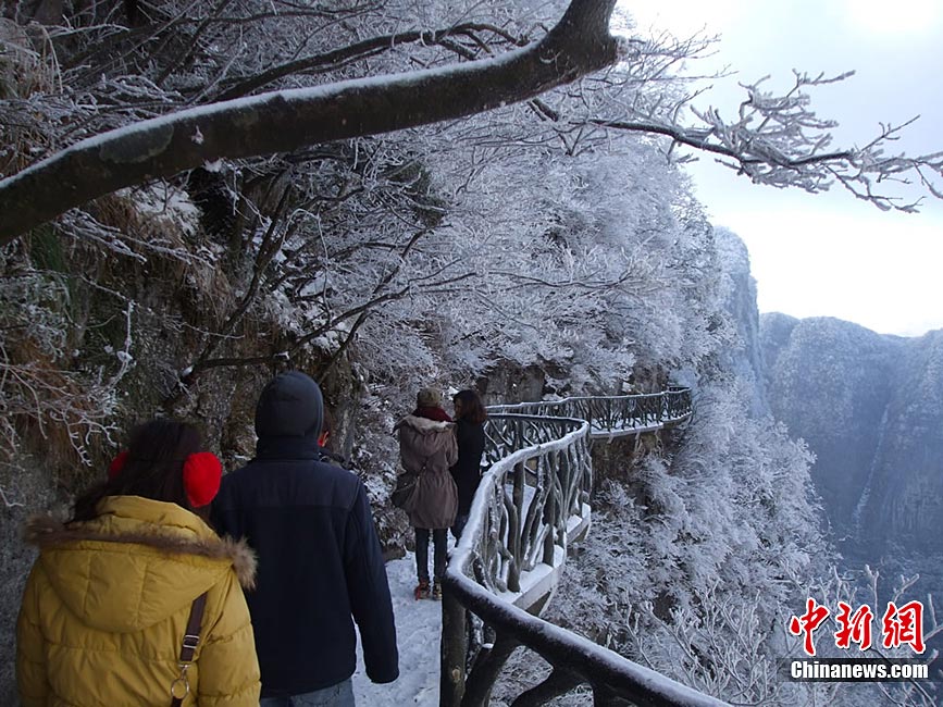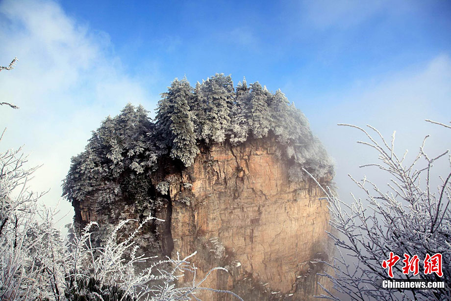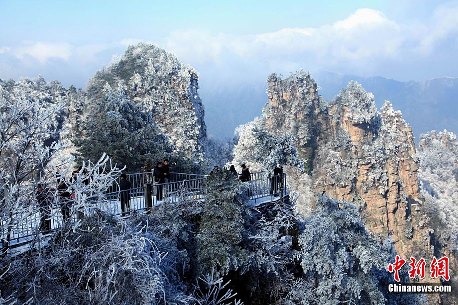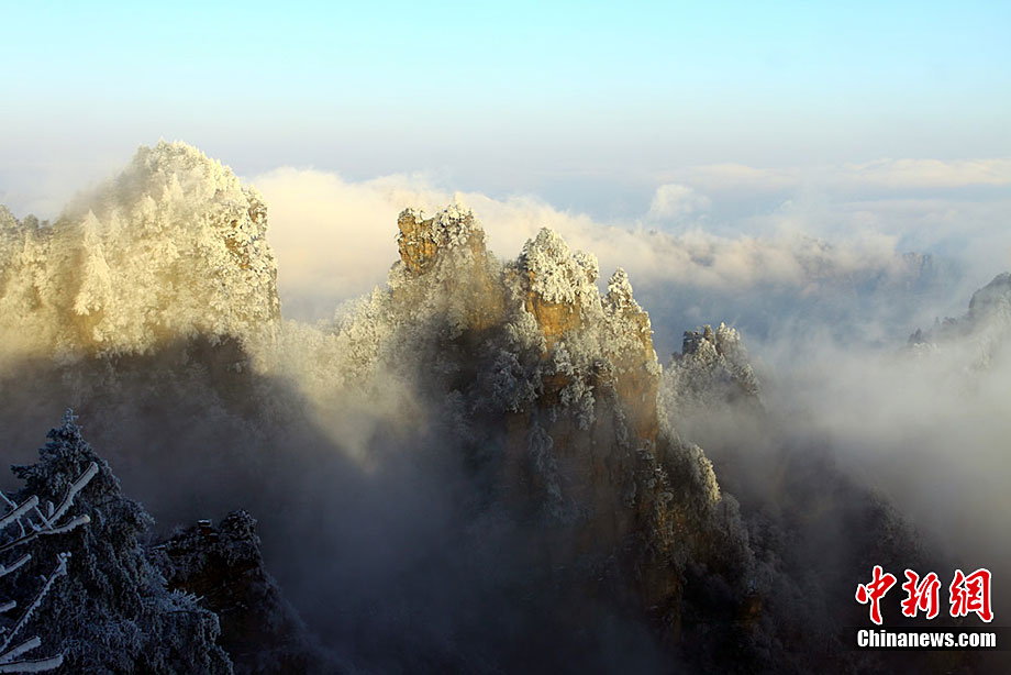12月16日,世界自然遗产张家界雪后放晴,天子山、黄石寨等景点出现美轮美奂的云海奇观。白雪覆盖的石英砂岩峰林,在云蒸霞蔚之间更显色彩斑斓,恍若仙境,令海内外游客无不陶醉其中。王传殊 邓道理 摄