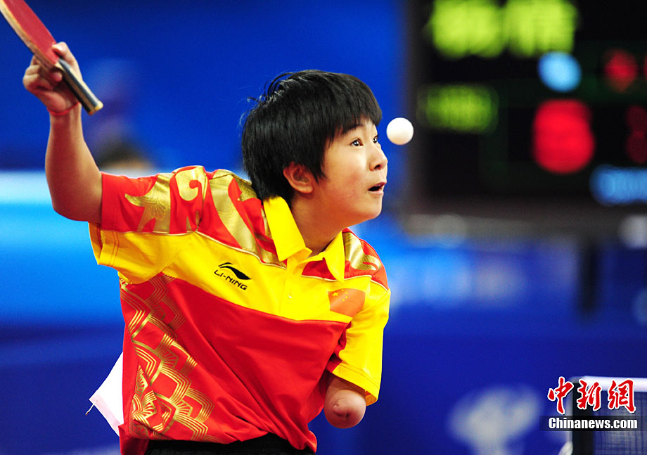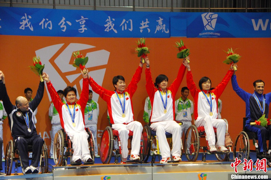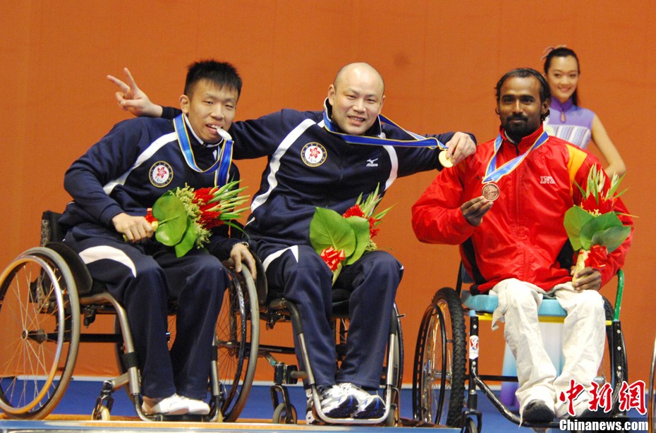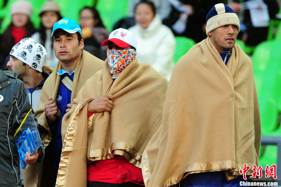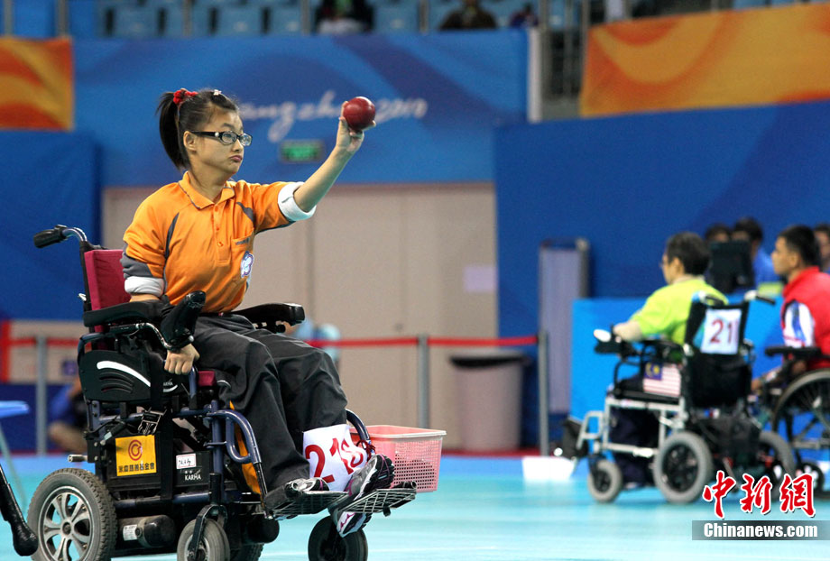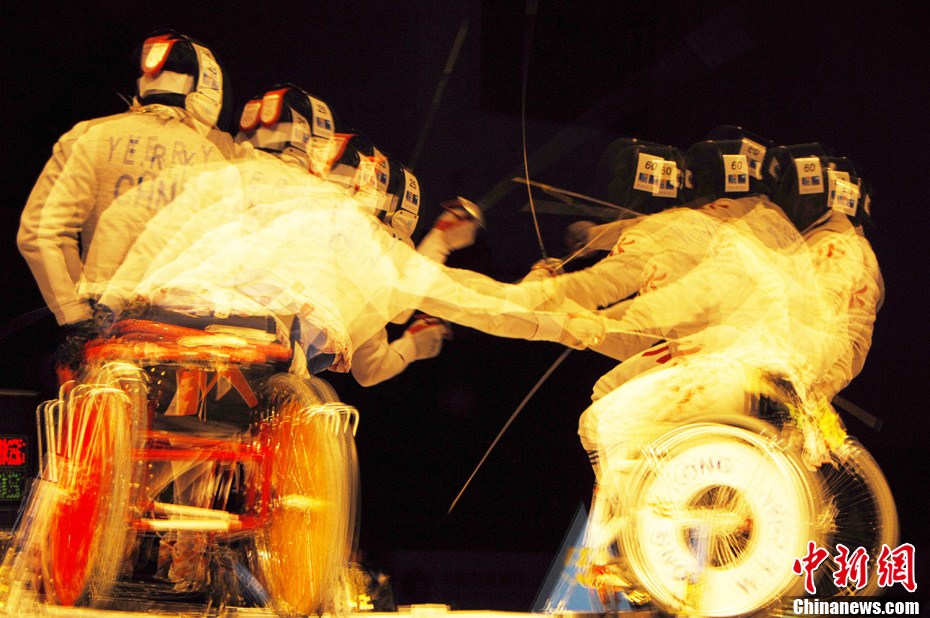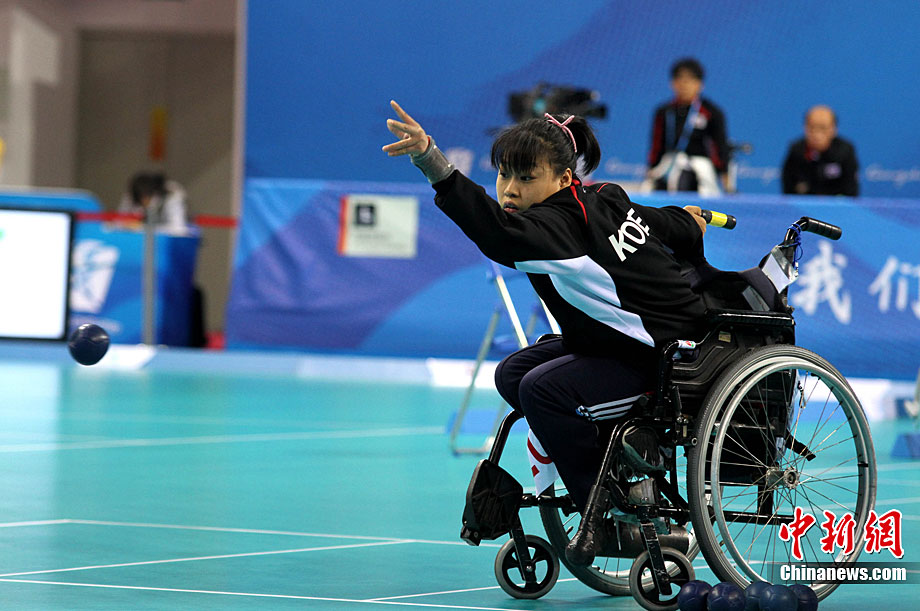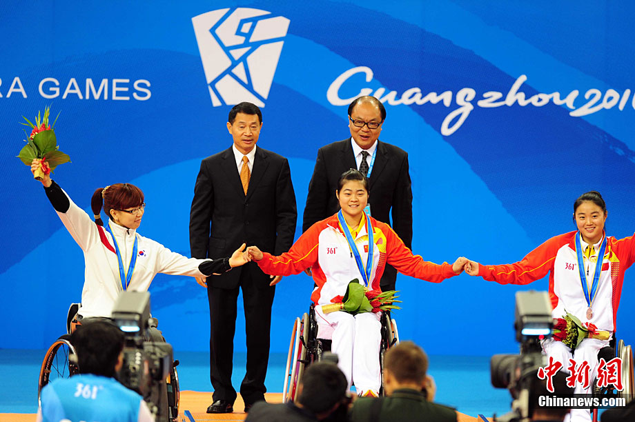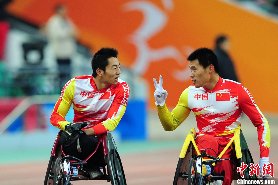 12月16日,广州2010年亚残运会田径赛进入第3天,广州遭遇寒流来袭气温降到最低2度,最高气温仅7度,亚洲选手在寒冷的气候条件下参赛。图为中国跳高选手李小文在比赛中。中新社记者 陈文 摄