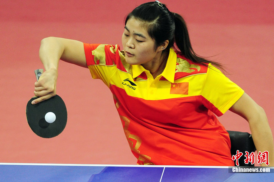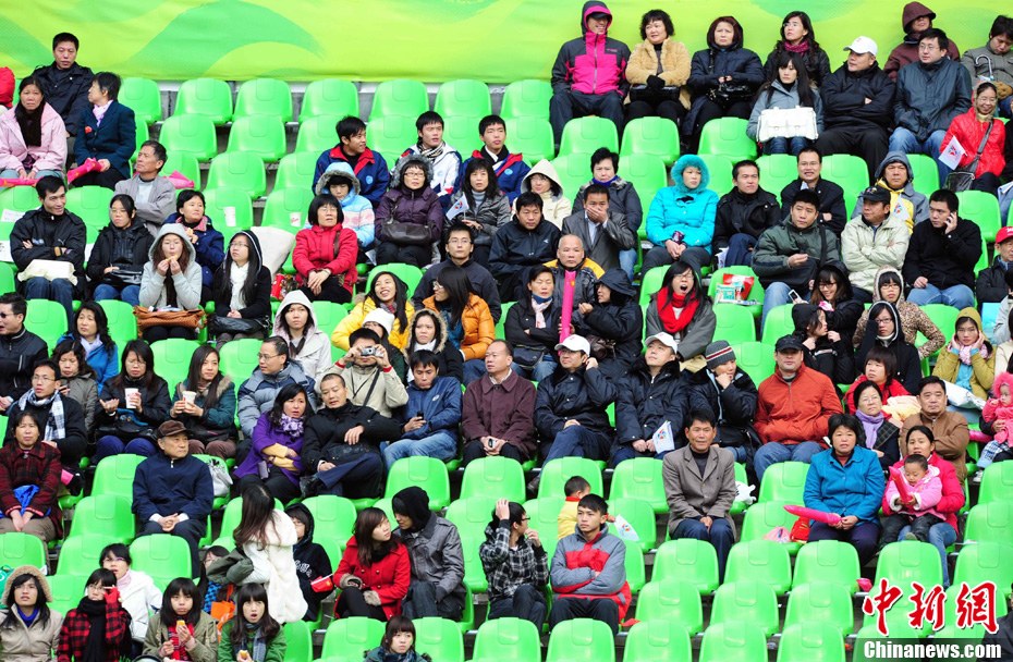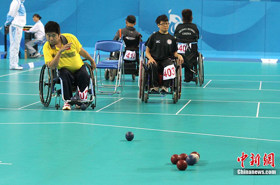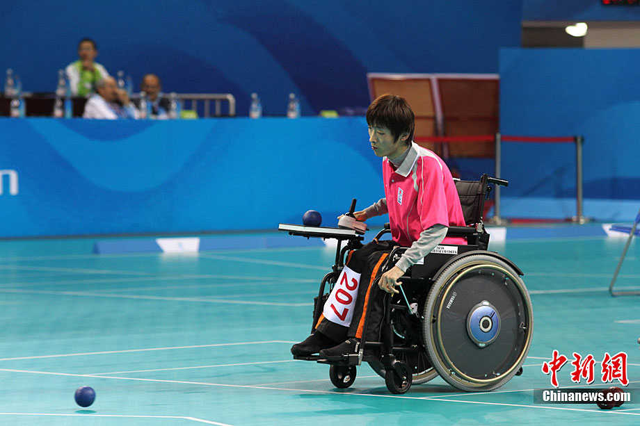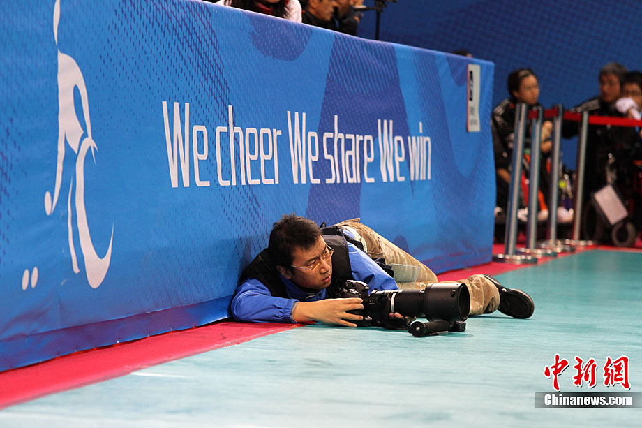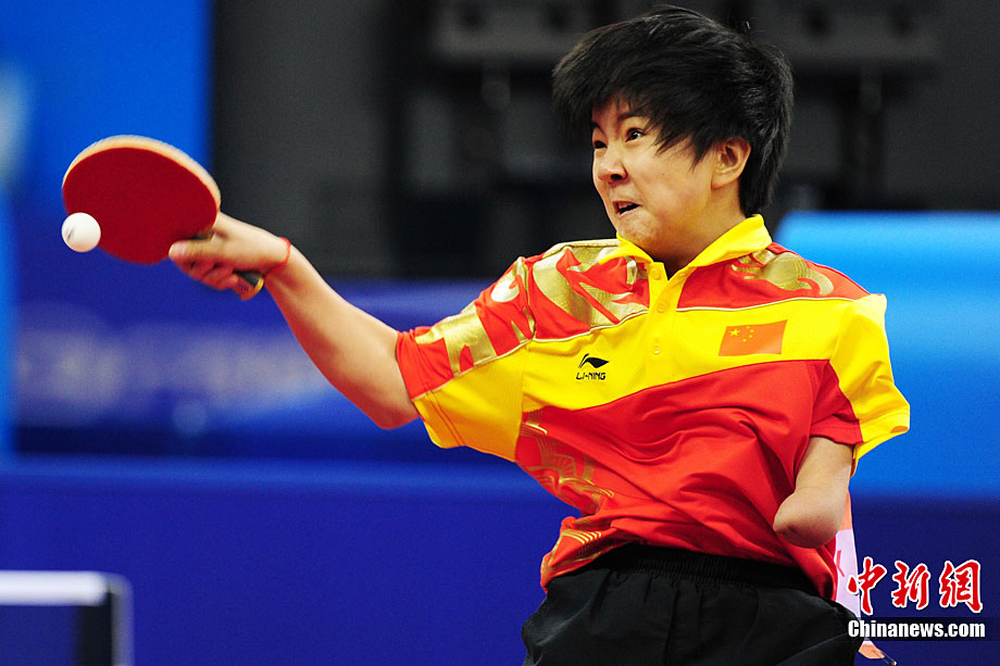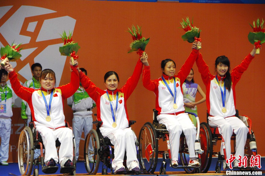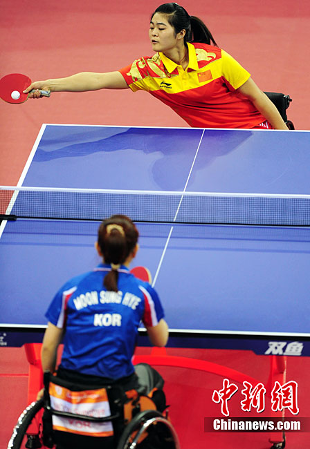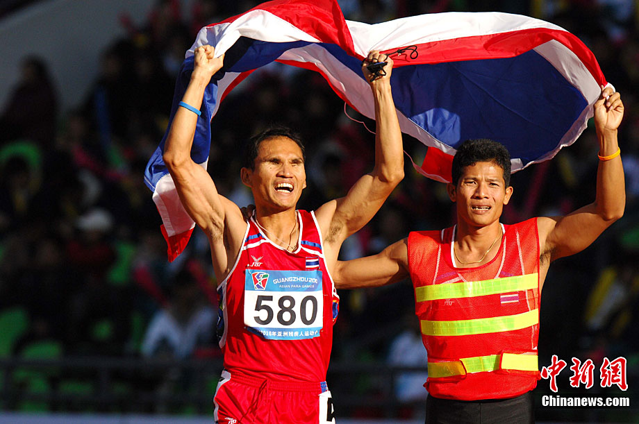 12月16日,广州2010年亚残运会田径赛进入第3天,广州遭遇寒流来袭气温降到最低2度,最高气温仅7度,亚洲选手在寒冷的气候条件下参赛。图为中国跳高选手李小文在比赛中。中新社记者 陈文 摄