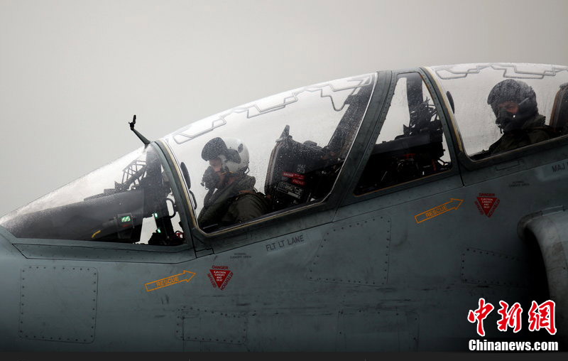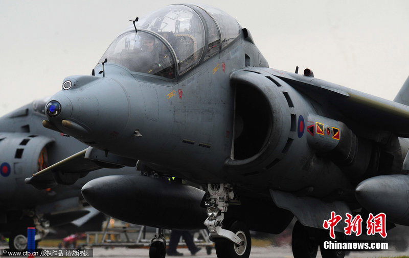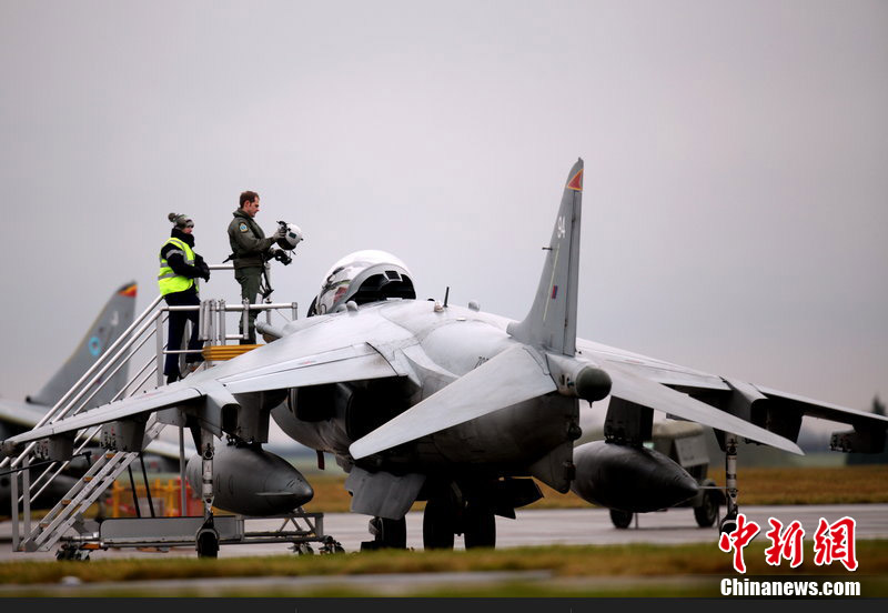 2010年12月15日,英国,飞行员在Cottesmone皇家空军基地执行“鹞”式战斗机的最后一次飞行任务。此次任务结束后,这款服役半个世纪的战机正式退役。鹞式战机拥有特殊的垂直升降能力,曾参与多次重要战役,包括马尔维纳斯群岛战争,以至近年的伊拉克和阿富汗战事。金融海啸后,英国政府面对庞大的财政压力,决定削减国防预算,结果鹞式战机也走进了历史。图片来源:CFP视觉中国