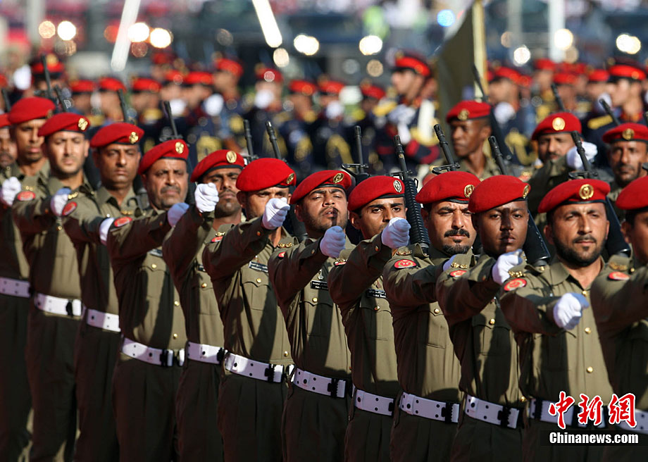 当地时间12月18日,卡塔尔首都多哈的海边大道上举行了盛大的国庆日阅兵式。
