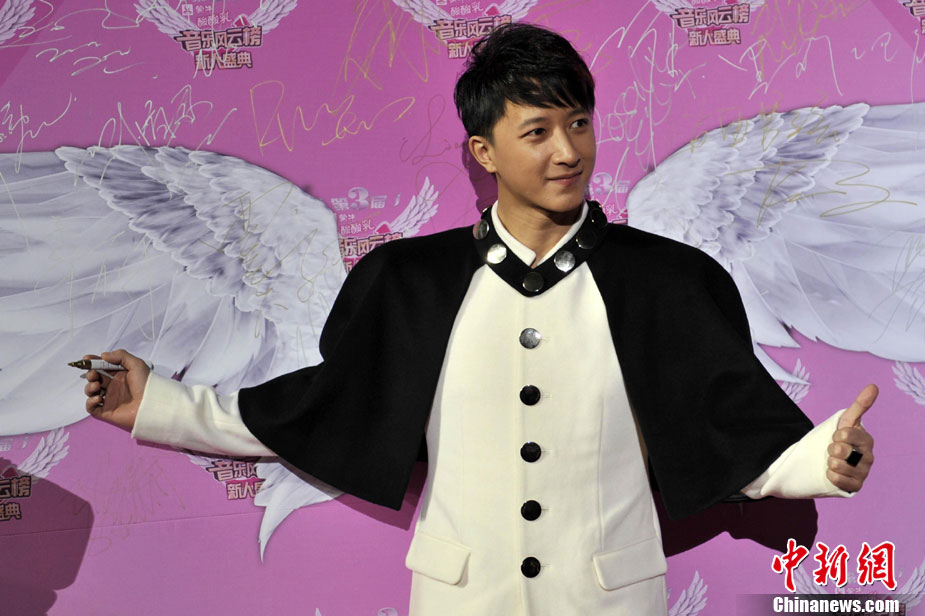12月19日晚,第三届音乐风云榜新人盛典在北京举行,众多明星包括韩庚、HEBE、郭书瑶、李霄云、江映蓉、刘惜君、谭咏麟、张智成等出席。此次新人盛典全面盘点了2010年华语乐坛崛起的新生代音乐力量,为这些乐坛的后起之秀加冕。图为韩庚亮相红毯。