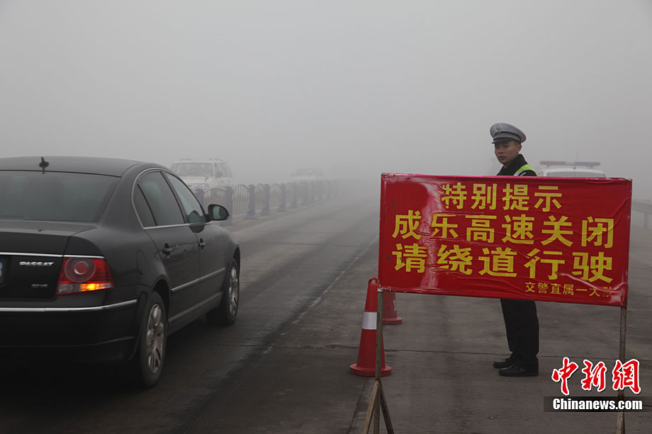 12月21日,四川眉山市遭遇大雾天气,多数地方能见度不足30米,造成成(都)乐(山)、成(都)雅(安)高速公路全线长时间封闭和长途客车停运,给人们的出行带来不便。尧遥 摄 图片来源:CNSPHOTO