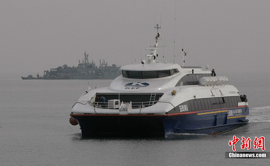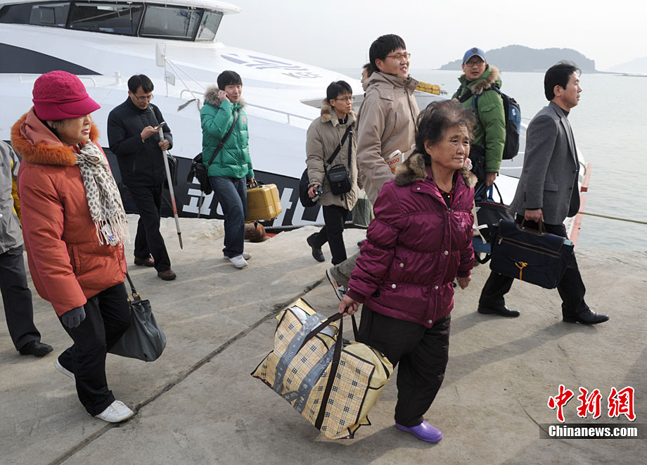 韩国延坪岛航线重开 居民乘船抵达