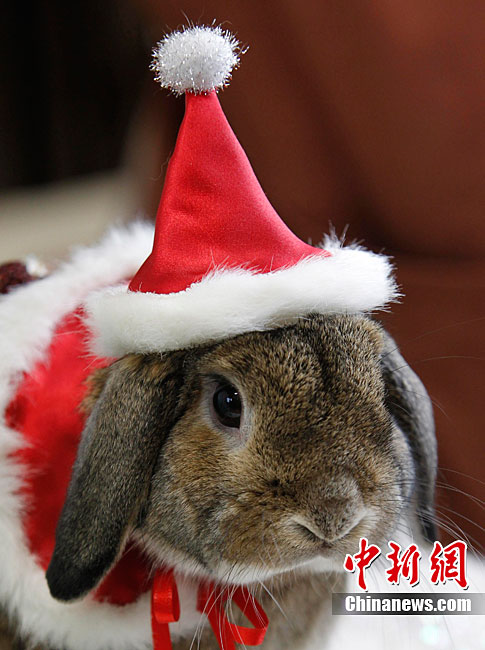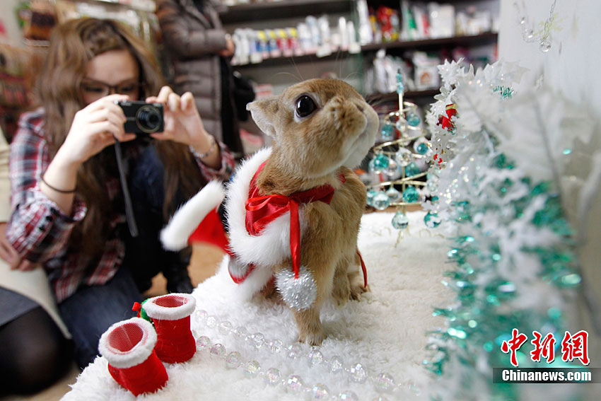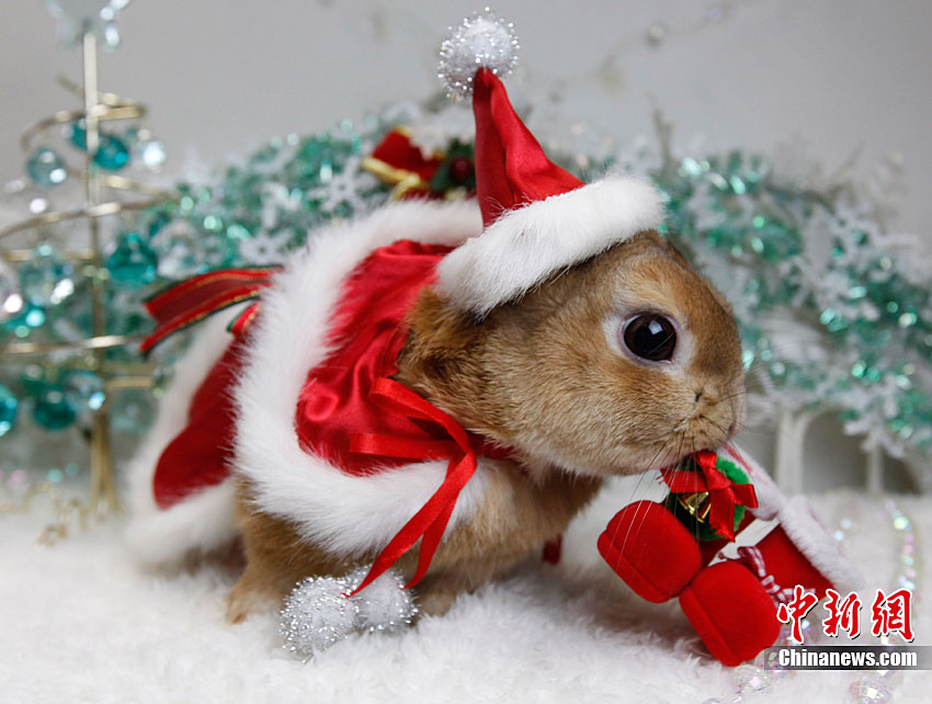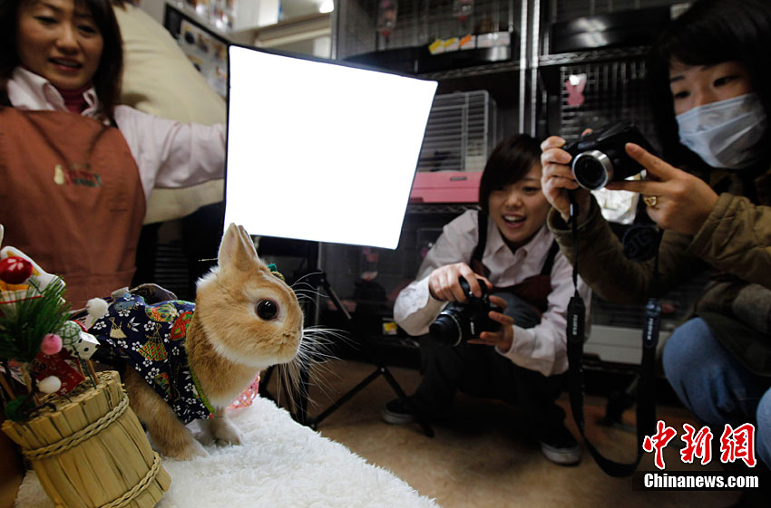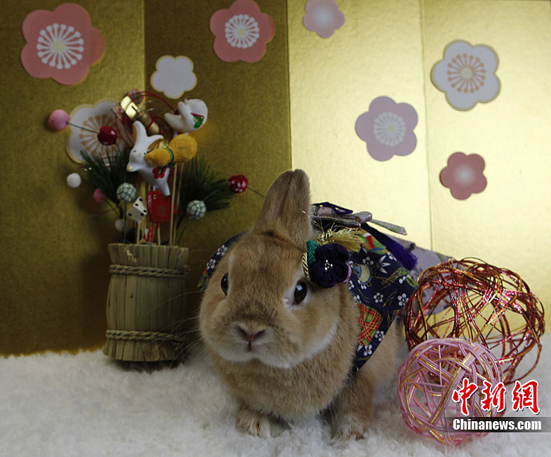 12月21日,日本横滨一家宠物店的小兔子穿上传统和服,迎接即将到来的圣诞节和兔年新年。日本自明治维新后采用公历纪年,元旦即是兔年新年的开始。