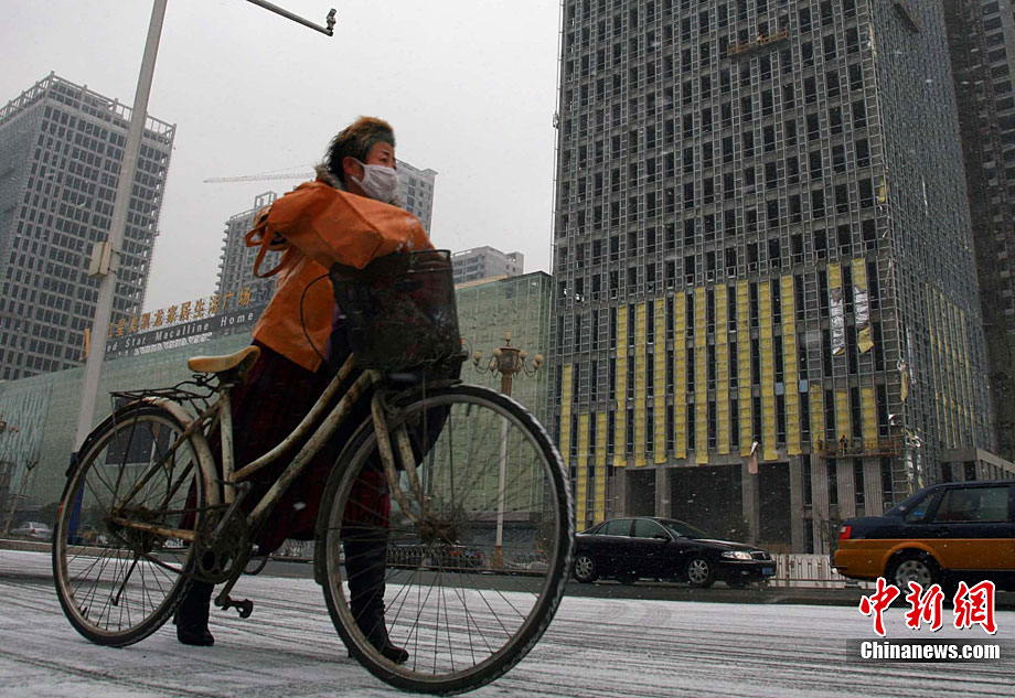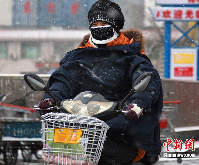 12月23日,中央气象台继续发布寒潮蓝色预警,受冷空气影响,中国中东部大部地区气温普遍下降6~10℃,河北坝上地区达到12~14℃的降温。图为河北一位“全副武装”出行的市民。中新社记者 翟羽佳 摄