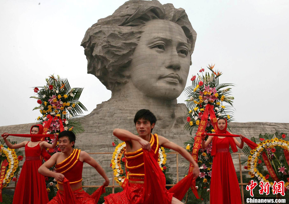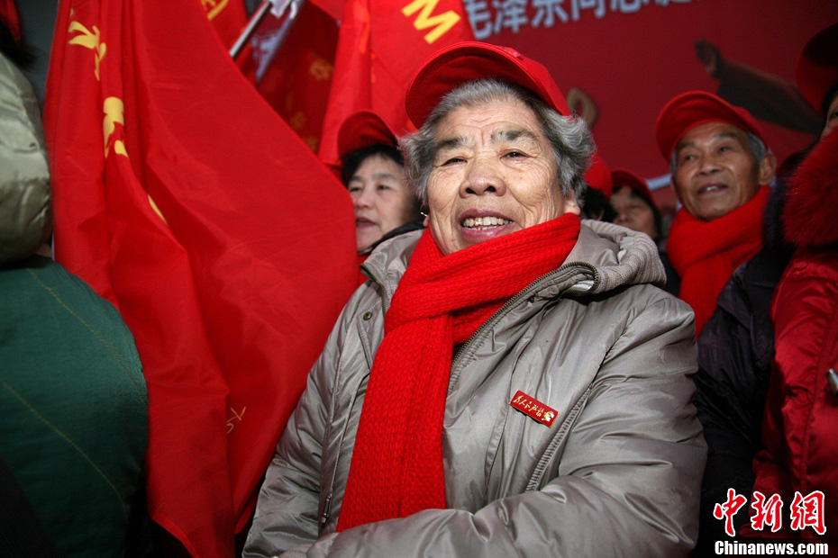 12月26日,河南郑州,民众聚集在紫荆山广场毛泽东塑像前向毛泽东同志塑像敬献花篮。当日是毛泽东诞辰117周年,北京、 甘肃、山西、 山东、河南等中国各地举行纪念毛主席诞辰活动,深切缅怀这位世纪伟人。中新社记者 王中举 摄