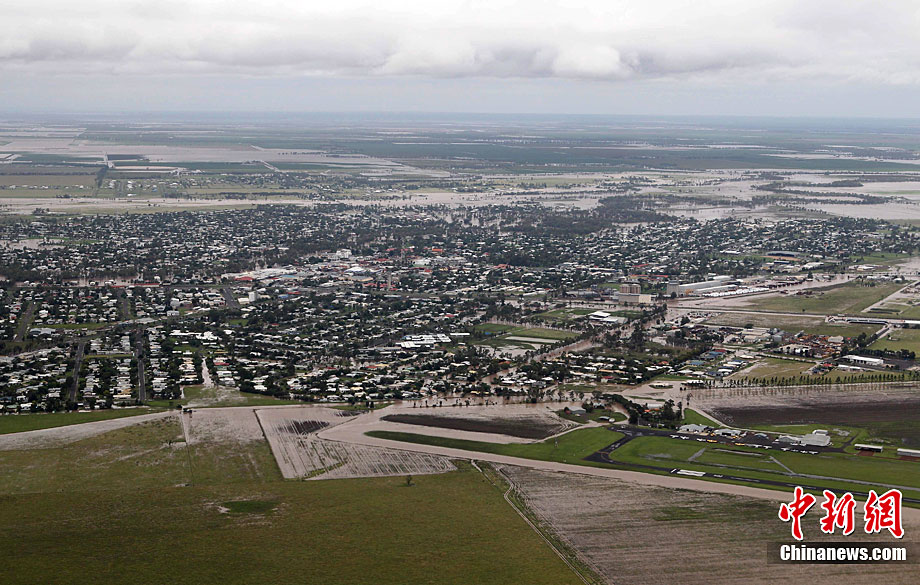 当地时间12月28日,受热带低压“塔莎”(TASHA)带来大量降雨的影响,澳大利亚昆士兰州的许多城镇被洪水围困,。昆士兰州的钦奇拉遭遇数十年来最为严重的暴雨袭击,降雨量一夜之间超过100毫米,使得多户人家被迫疏散。图为航拍的受灾地区。