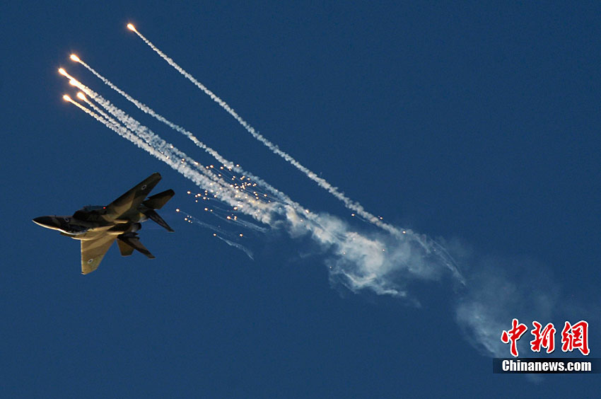 当地时间12月28日,在以色列南部城市贝尔谢巴附近的哈特泽里姆空军基地,以色列空军飞行学院的毕业生进行飞行表演。当日,数十名以色列空军飞行学院的学员在这里举行毕业典礼,并进行飞行表演。