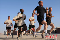 英首相与士兵一起晨跑