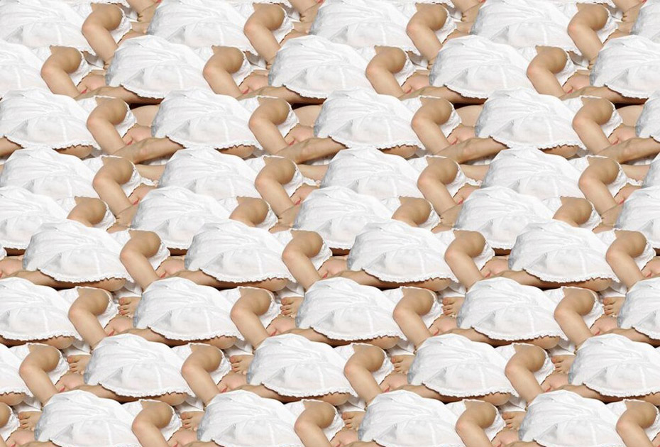 德国艺术家、摄影师Claudia Rogge,他非常痴迷图案造型,也许你喜欢的图案是类似于花纹或者墙纸那种,但他却喜欢用人来组合图案造型。他的这种痴迷促使他完成这个大手笔的制作:大量的模特摆着相似的姿势,穿着相同的衣服,组成了稍显恐怖的人体图案。不可否认的是,他的部分作品使用了后期特效。