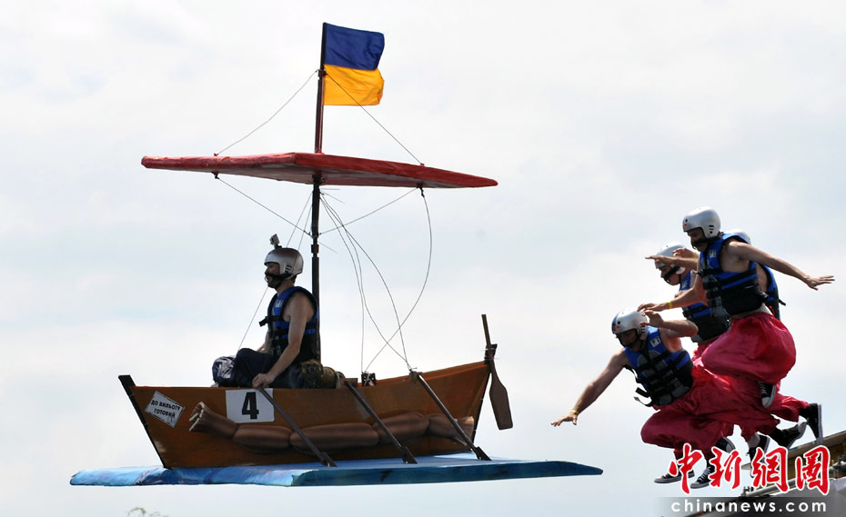 6月19日,乌克兰首都举办2010红牛杯“鸟人”大赛,约有39支队伍参加了自制飞行器滑翔大赛。