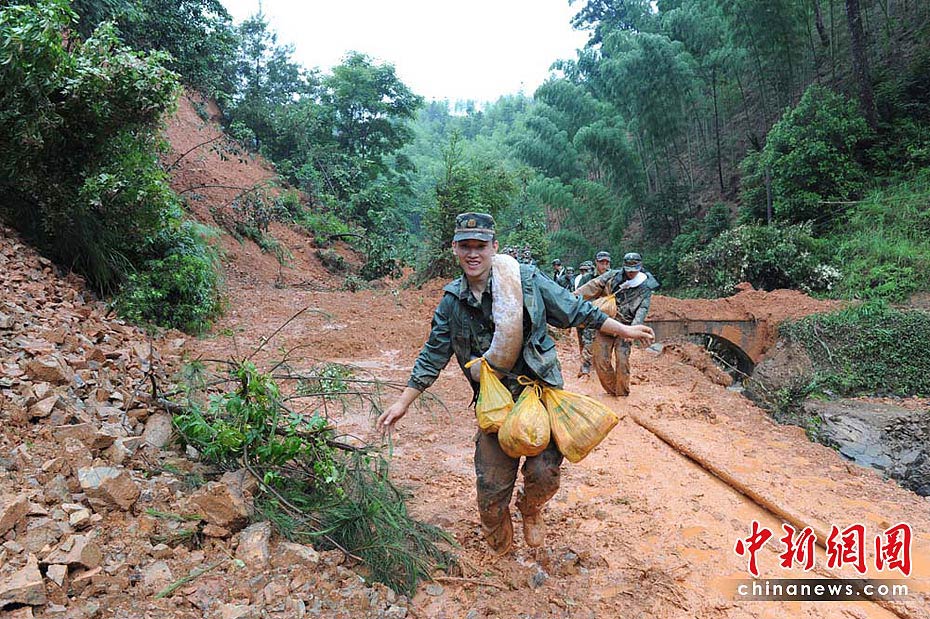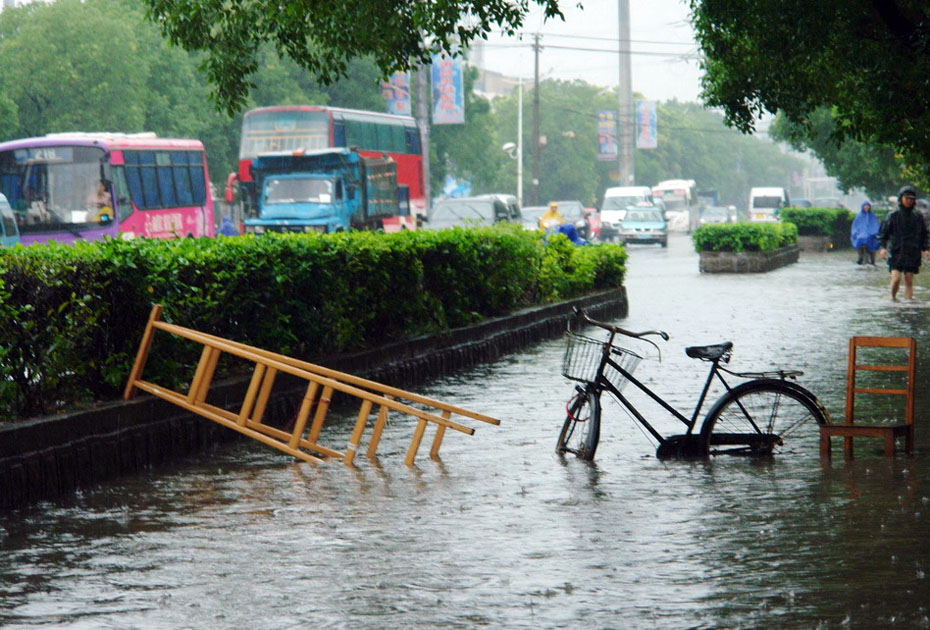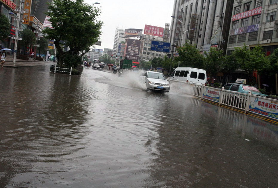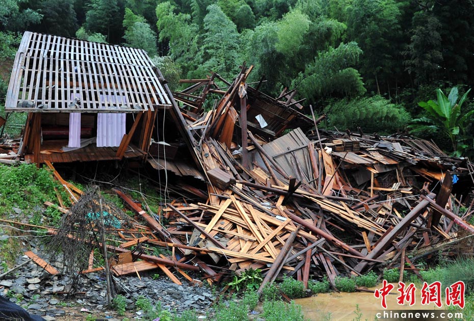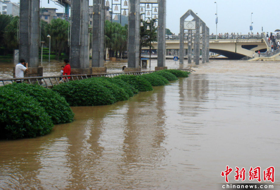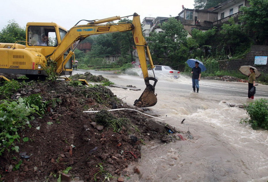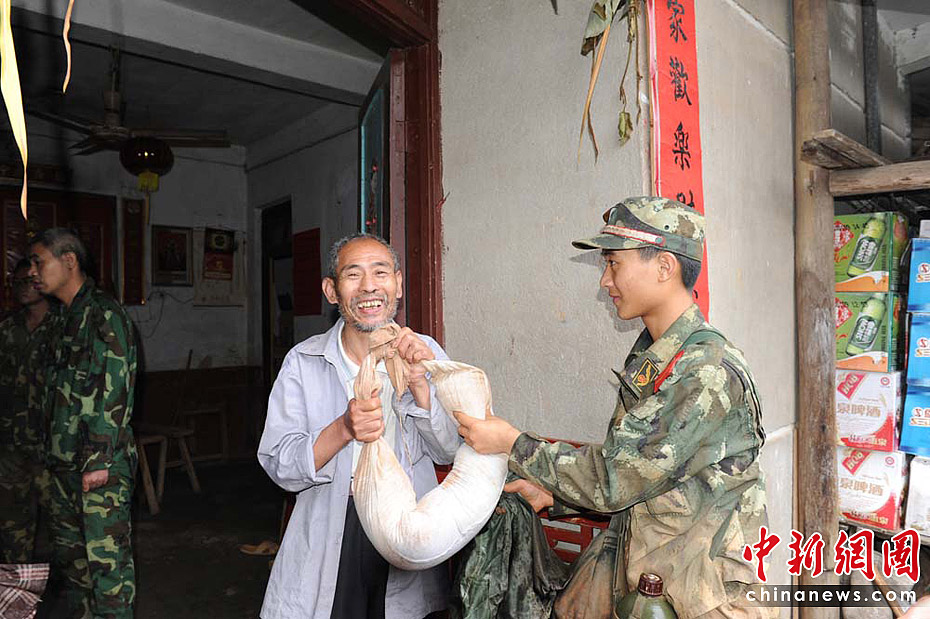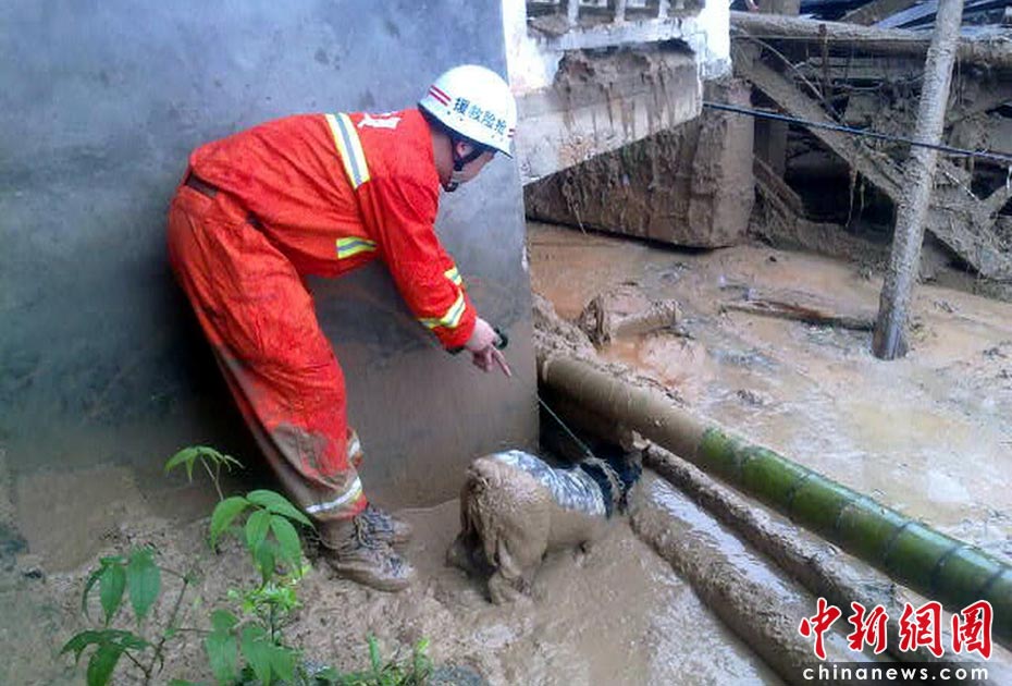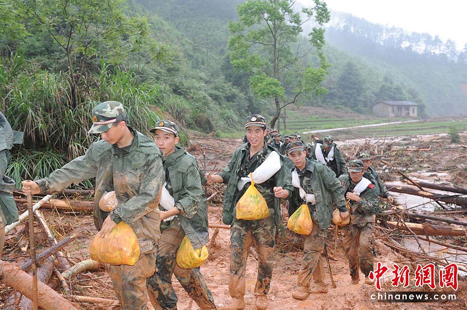 6月19日,在南昌市青云谱区狮子口村,村民扛着家人涉水前行。图片来源:新华网