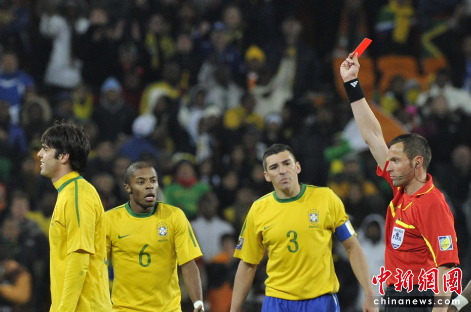 北京时间6月21日凌晨进行的一场世界杯小组赛中,巴西队在约翰内斯堡足球城球场迎来了第二个对手科特迪瓦。最终凭借法比亚诺梅开二度和埃拉诺的进球,巴西3-1击败科特迪瓦。而在比赛进行到第88分钟时,卡卡因肘击对方球员,累计两张黄牌被罚下场。