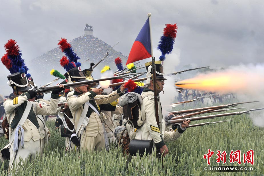 6月20日,在比利时首都布鲁塞尔以南20公里的滑铁卢,大约3000名来自多个国家的历史爱好者身着古军装,在滑铁卢安营扎寨,重现著名的滑铁卢战役。以此纪念滑铁卢战役195周年。