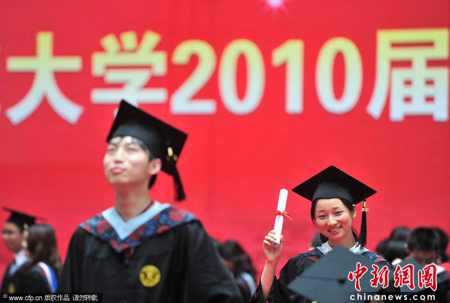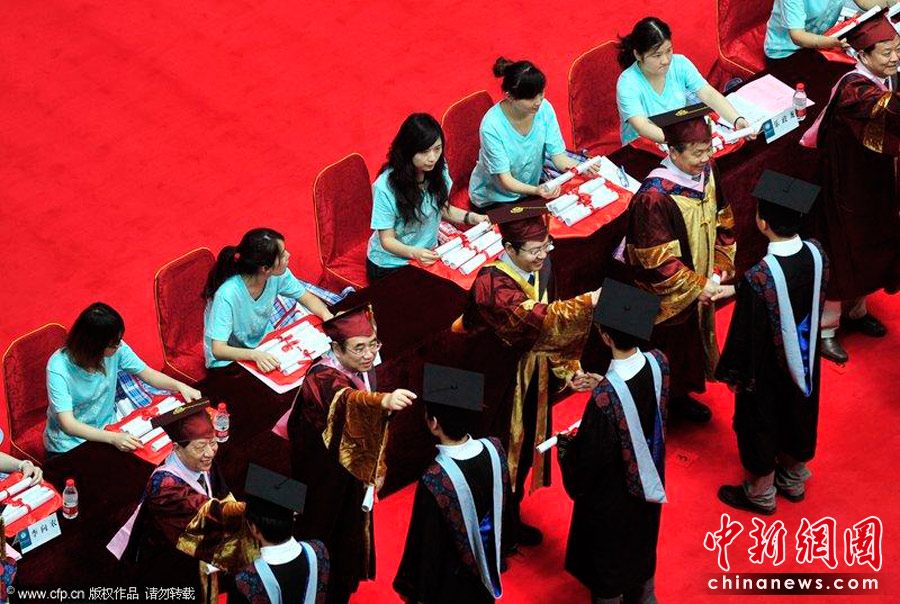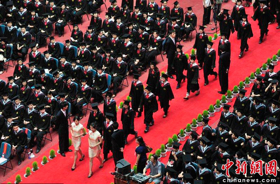 2010年6月24日,华中师范大学在该校佑铭体育馆举行2010届毕业生毕业典礼暨学位授予仪式,3177名本科生庄严宣誓。仪式授予现场,校方精心为毕业生准备了“奥斯卡似的学位授予典礼”:40多米长的红地毯两侧摄影机、相机严阵以待,4名男生笔直站立“警戒”,校礼仪队的女生为身穿学士学位服的毕业生们引路。Shepherd C.Zhou/CFP