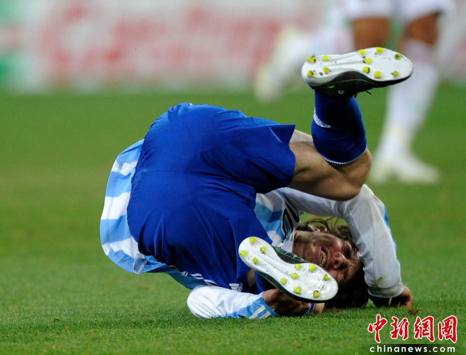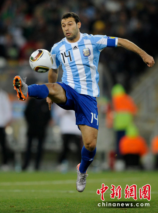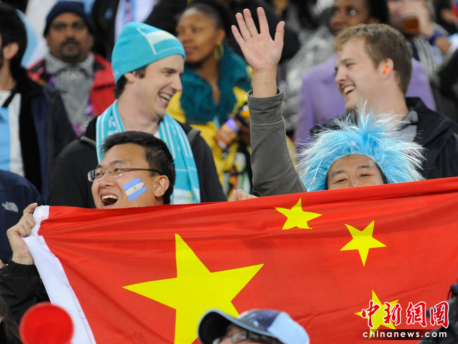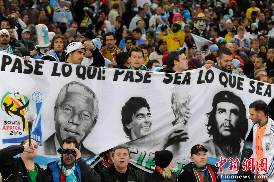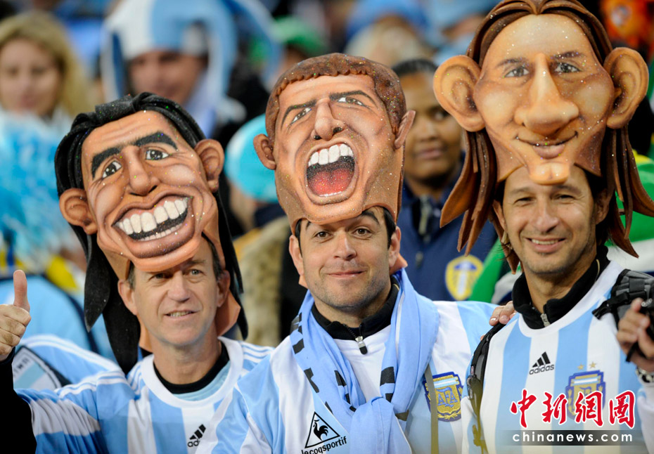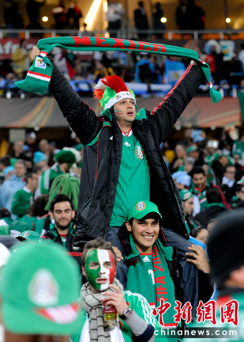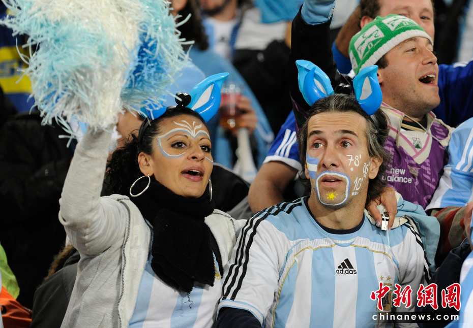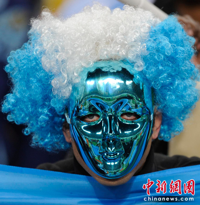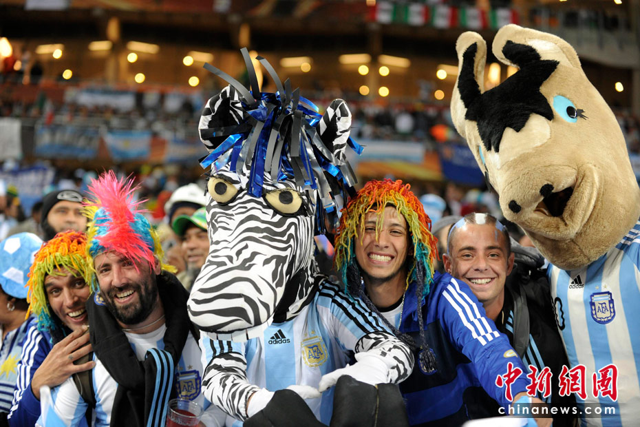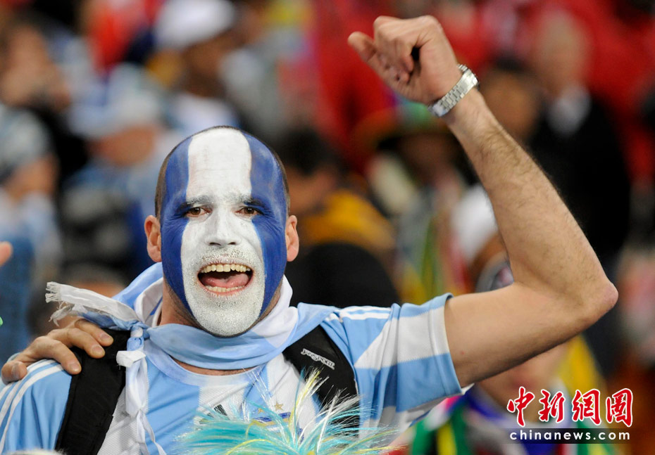 北京时间6月28日凌晨2:30,南非世界杯1/8决赛再赛一场,阿根廷队在约翰内斯堡的足球城球场迎来了墨西哥队。凭借特维斯一个明显越位进球首开纪录,随后伊瓜因和特维斯各进一球,以3-1击败墨西哥,晋级八强。 中新社记者 廖攀 摄