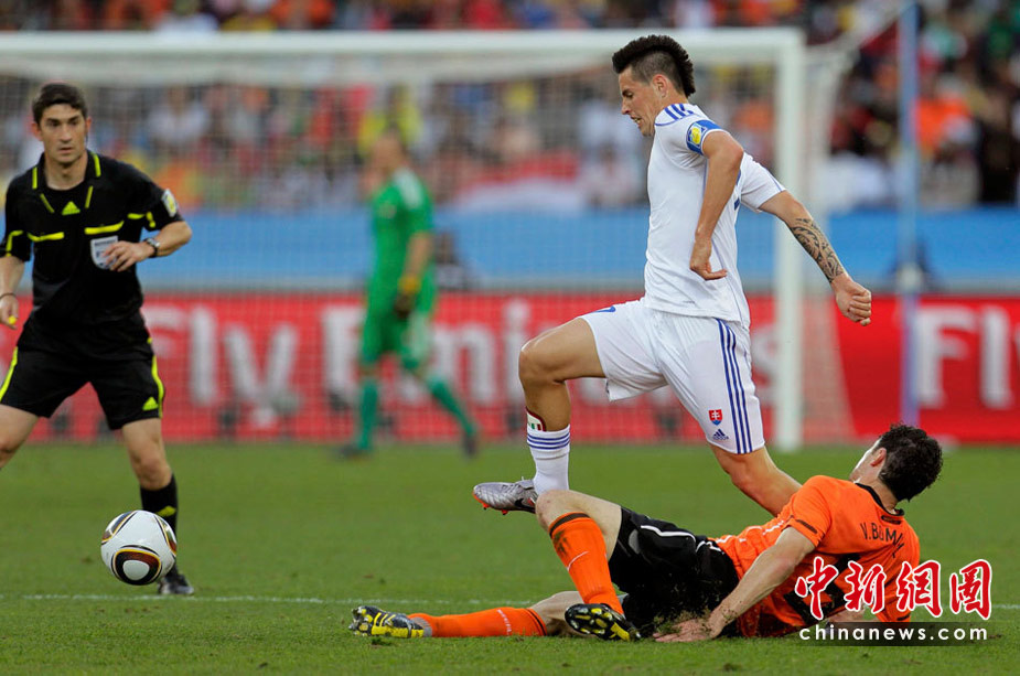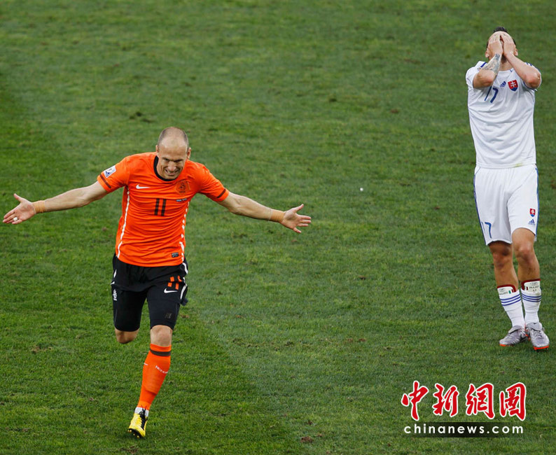 28日晚,南非世界杯1/8决赛第五场比赛在德班球场拉开战幕,由E组头名荷兰队迎战F2第二名斯洛伐克。最终,凭借罗本和斯内德在上下半场的进球,荷兰队以2-1淘汰斯洛伐克,闯入八强。