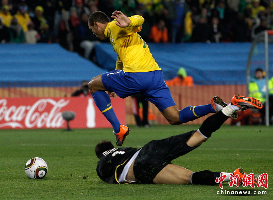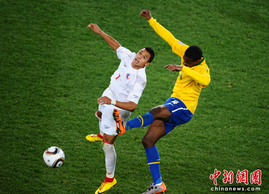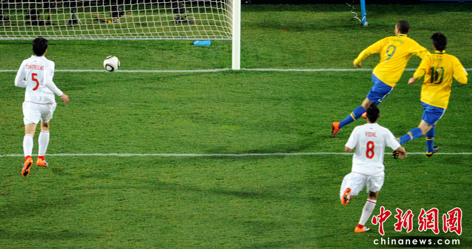 6月29日凌晨2:30,南非世界杯1/8决赛再战一场。夺冠热门巴西队在约翰内斯埃利斯公园球场迎来了南美兄弟智利队。最终凭借胡安和法比亚诺的在上半场的进球、罗比尼奥下半场锦上添花,巴西队以3-0淘汰智利,晋级八强。