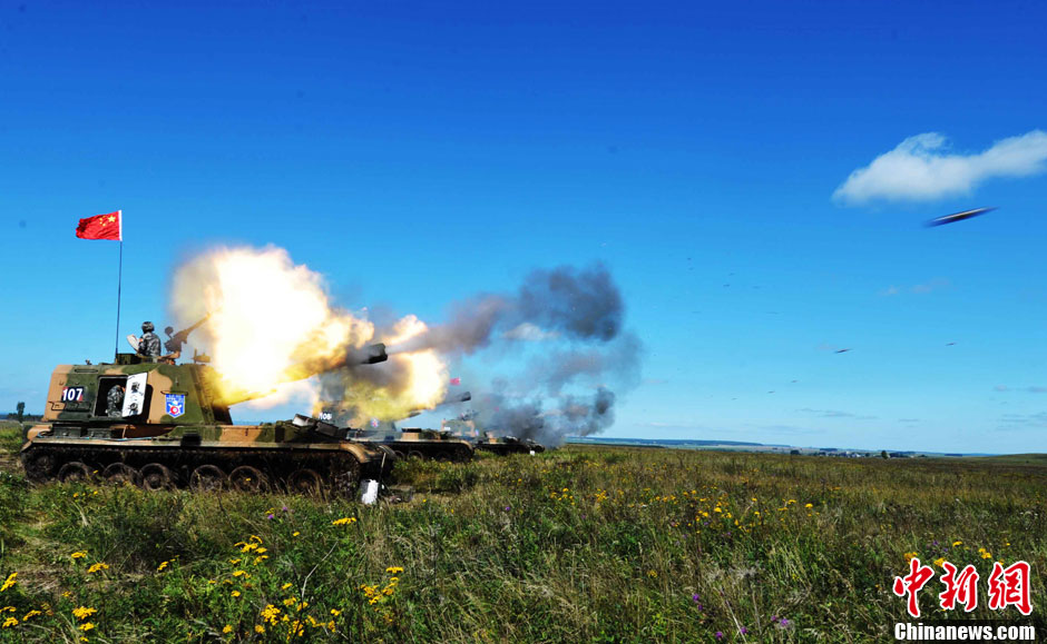 中俄联合反恐军事演习进行实兵实弹协同训练