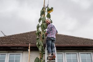 超过房顶高的向日葵