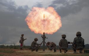 陆军第75集团军某旅在滇东高原开展迫击炮实弹射击训练。据悉,该旅紧贴实战背景,充分利用野外复杂陌生地域环境,锤炼官兵打赢本领,有效检验了火力分队“快速反应、快速机动、快速打击、快速撤离”等实战化水平。图为炮弹精准命中目标。 李昌奇 摄