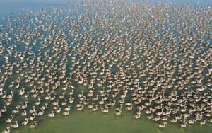 8月16日,渔船从广东省阳江市闸坡国家级中心渔港起航驶向大海。当日,南海伏季休渔期正式结束,渔船启航驶向大海,开始新一轮的捕捞。(无人机照片) 中新社记者 陈楚红 摄