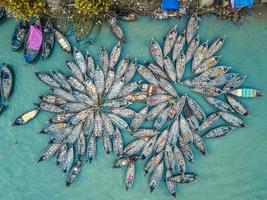 孟加拉国港口船只如同绽放花朵