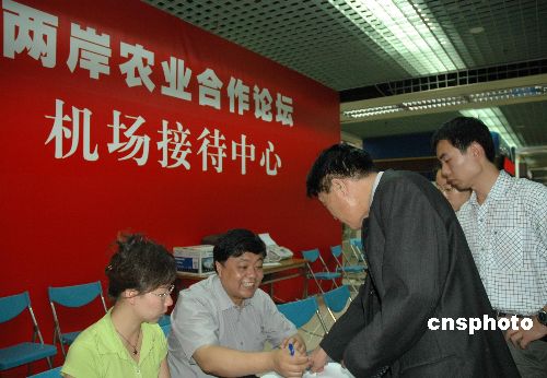来自中国、美国、日本、越南和港澳台的海内外六十一家媒体三百名记者聚焦博鳌两岸农业合作论坛。图为来自北京的媒体十月十五日在海口美兰机场注册报到。中新社发 王辛莉 摄