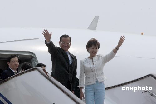 四月三十日,中国国民党荣誉主席连战一行在出席了第三届两岸经贸文化论坛之后,乘坐包机从北京首都国际机场返台。中新社发 盛佳鹏 摄