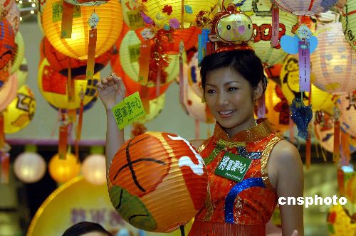 9月18日,香港将军澳中心举行“中秋彩灯节”开幕礼,“嫦娥仙子”展示由百名小朋友自由设计的奥运中秋灯笼。中新社发 谭达明 摄