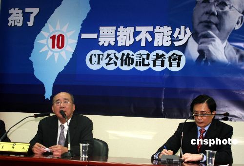 一月七日,中国国民党主席吴伯雄(左一)上午在国民党中央党部主持催票文宣发表记者会。当日距第七届“立委”选举投票日只有五天,台湾“选战”氛围日浓。中新社发 陈立宇 摄