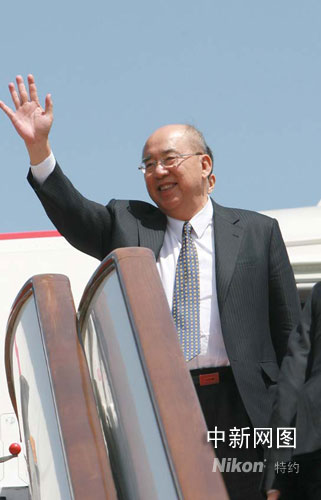 中国国民党主席吴伯雄一行离京飞赴上海