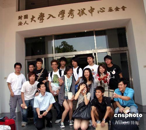 台湾一年一度的“高考”——大学入学指定科目考试7月3日结束。今年共有九万多考生报名参加,总数少于去年。今年大学入学考试中心共选择了学生、老师等62人,提前13天进入设在台湾大学生命科学馆地下的闱场。他们的任务包括审校试题、排版印刷等。为保密起见,62人自入闱后,一直与外界失去联系。考试结束后,方才出闱,重获自由。图为出闱后在大考中心开心留影。中新社发 徐长安 摄