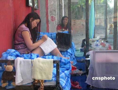2007年4月24日,两位行为艺术表演者扮演一个月的临时夫妻。在北京某艺术中心,行为艺术表演者模拟现实生活中的夫妻,他们的“家”是一个高约4米、长约4米、宽约3米的玻璃房子,这座房子没有窗户,只在屋顶有一个小天窗,房间用玻璃墙一分为二,只能交谈,不能碰触,他们将在此生活一个月。到5月22日,他们才能走出玻璃屋。中新社发 吴芒子 摄