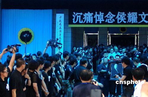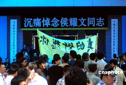 七月七日,北京八宝山革命公墓第一告别室前送别侯耀文的群众打出“真的好想你”标语。当日,中国著名相声演员侯耀文遗体告别仪式在北京八宝山举行,上万群众自发前来参加追悼会。侯耀文是中国相声大师侯宝林之子,六月二十三日晚突发心肌梗死,在北京家中去世,享年五十九岁。中新社发 廖攀 摄