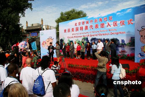 9月28日,2007年世界夏季特殊奥林匹克运动会北京市社区接待活动在西城区什刹海举行。来自美国的60多名特奥会运动员走进社区。中新社发 富田 摄