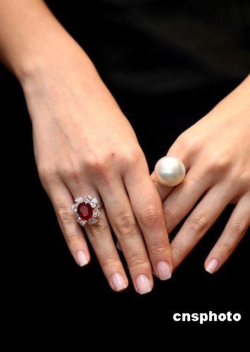 十月二十三日,香港举行佳士得珠宝及翡翠首饰拍卖预展。此次拍卖会将于11月28日在香港举行。中新社发 王丽南 摄