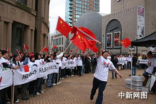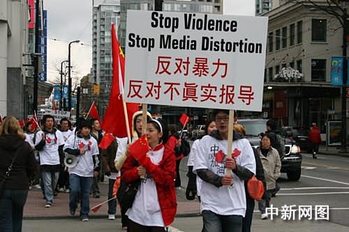 当地时间29日下午,加拿大温哥华部分中国留学生和华人代表组织“反暴力,反媒体对西藏事件失实报道”集会活动。中新社记者吕振亚摄